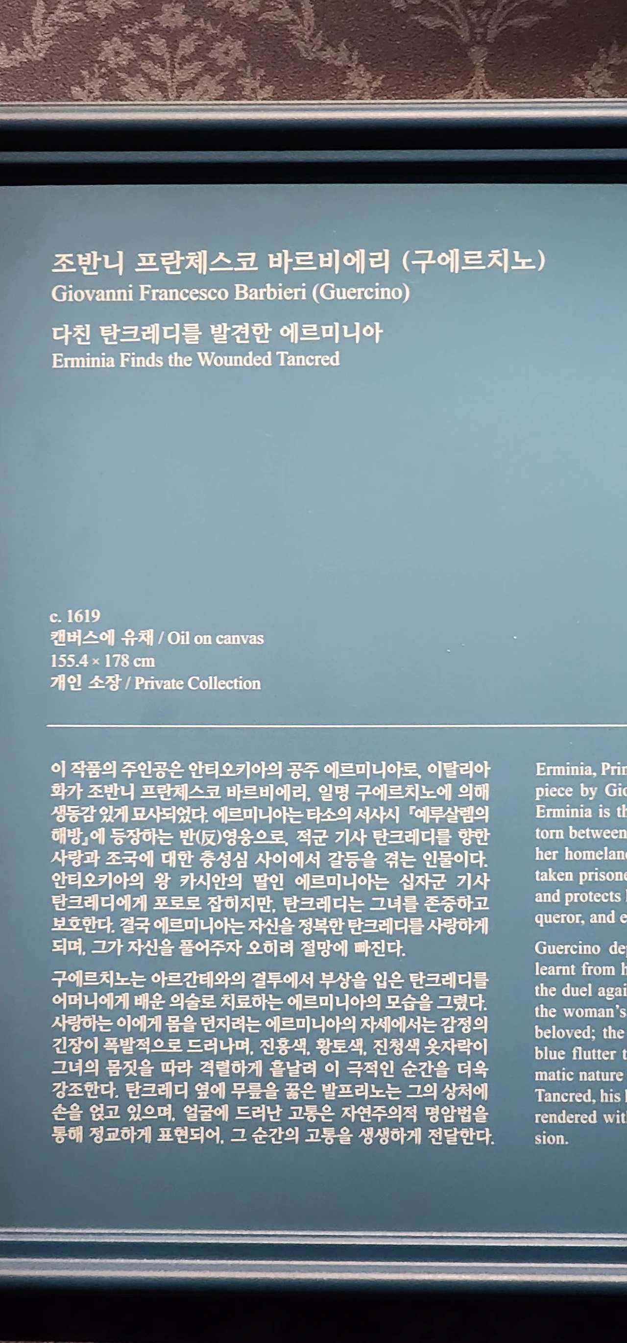 이 작품의 주인공은 안티오키아의 공주 에르미니아로, 이탈리아화가 조반니 프란체스코 바르비에리, 일명 구에르치노에 의해 생동감 있게 묘사되었다.