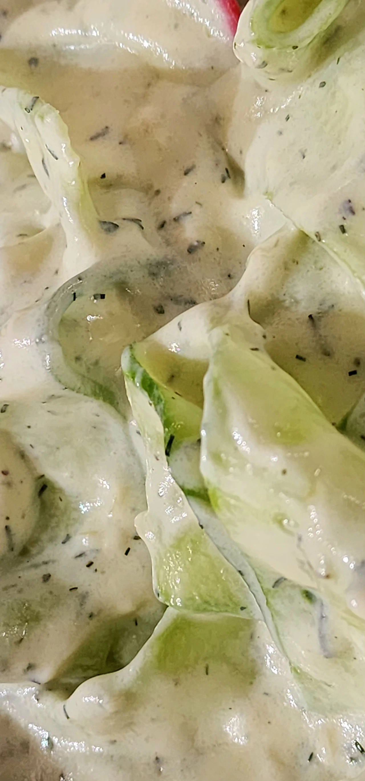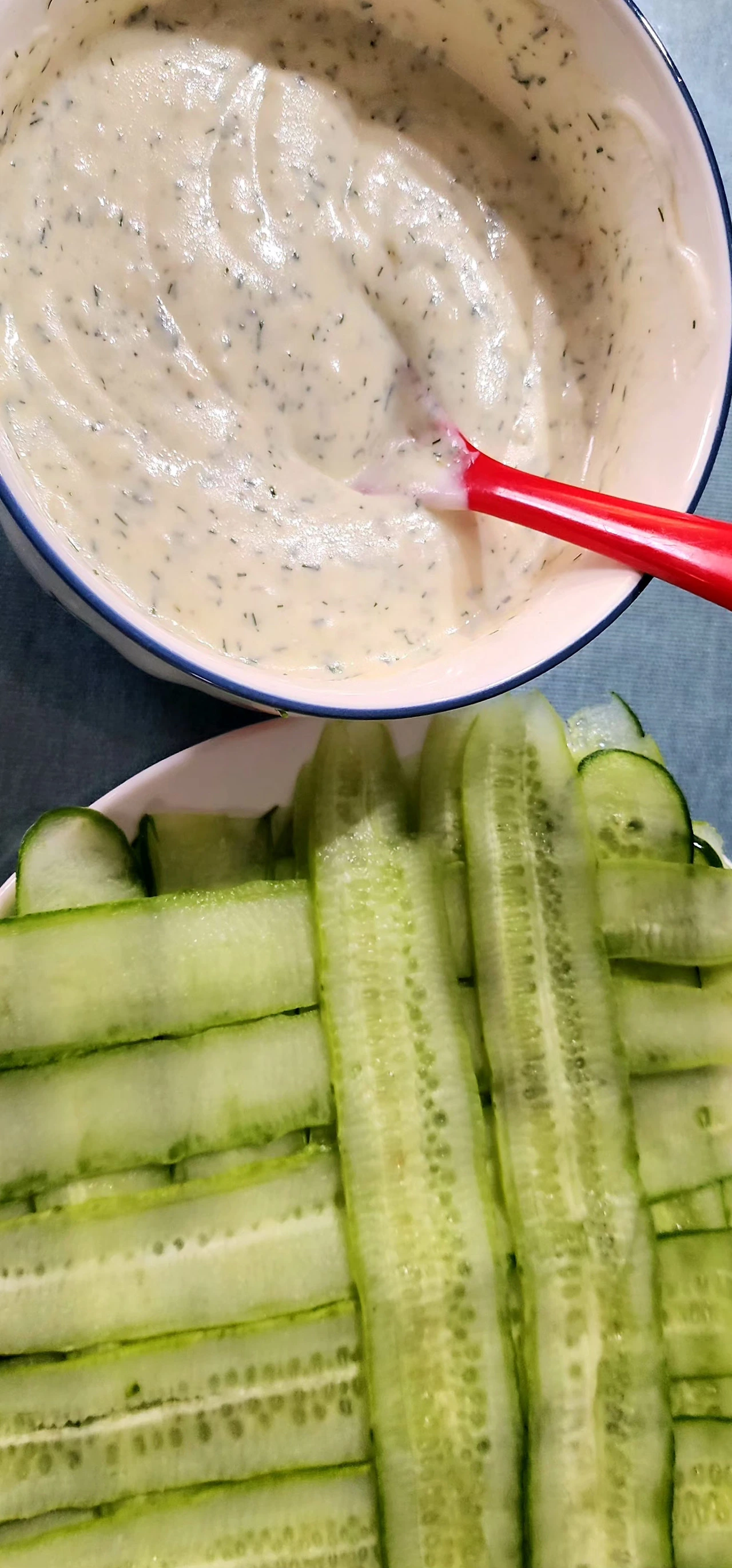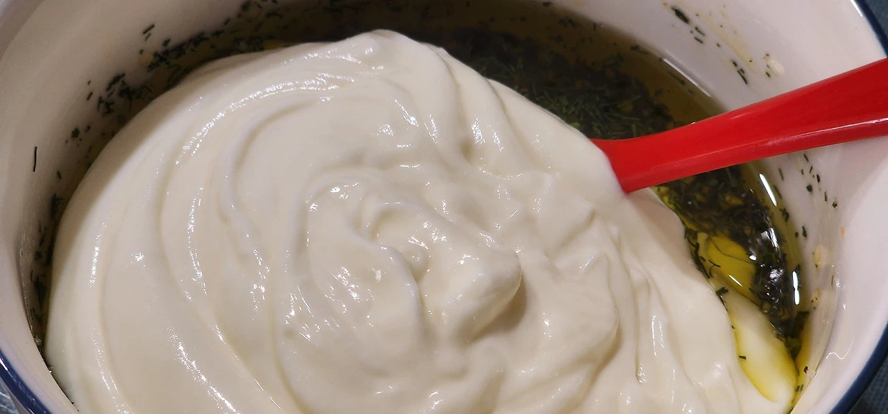 마요네즈처럼 보이지만 그릭 요거트다. 오이 수분을 비교적 잘 빼냈더니 며칠이 지나도 그대로다. 며칠 지나도 맛의 변화가 없어서 일주일 정도는 무난하다. 사실은 그 이상도 괜찮은 것 같다.