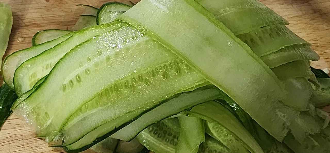 오이를 써는 방식은 여러 방식으로 하는 것 같은데, 나는 슬라이스로 했다.