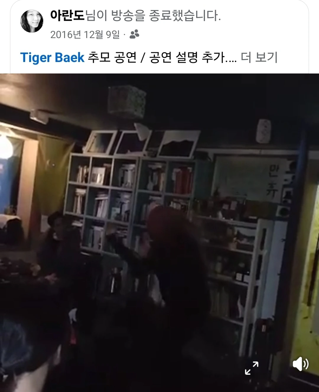 2016년 송창식의 '꽃보다 귀한 여인', 정태춘의 '5·18' 두 곡으로 타이거 백 님이 만휴에서 행위예술 춤사위를 열었었다.