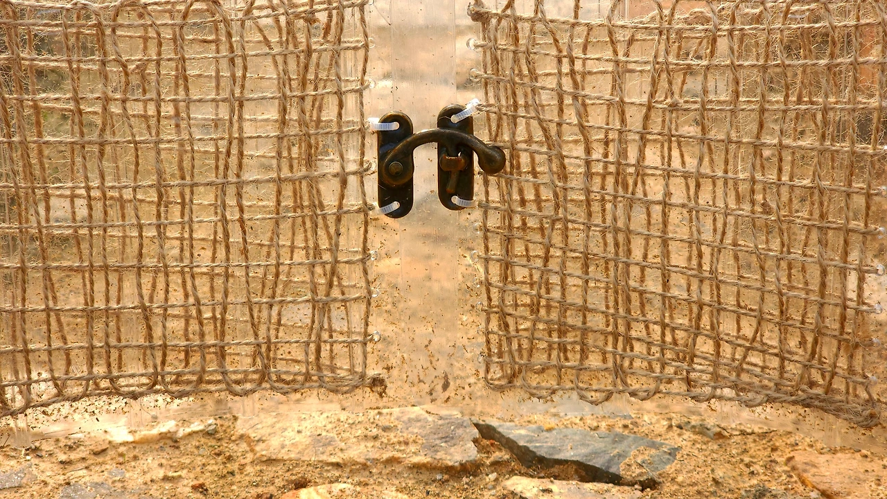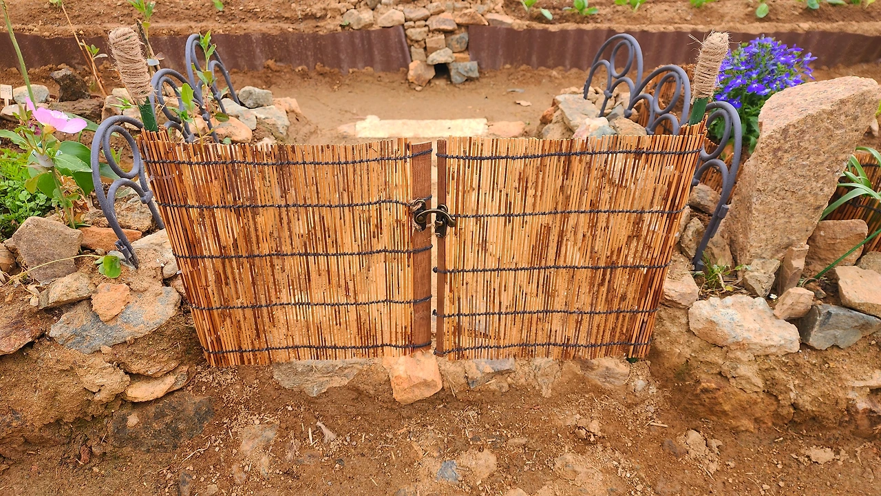 문 만들어 다는 것은 생각처럼 간단한 일은 아니었다. 처음에는 갈대로 만든 발로 대문을 만들었다. 힘이 약해서 바람이 부니까 며칠 지나자 조금은 늘어진 듯했다.