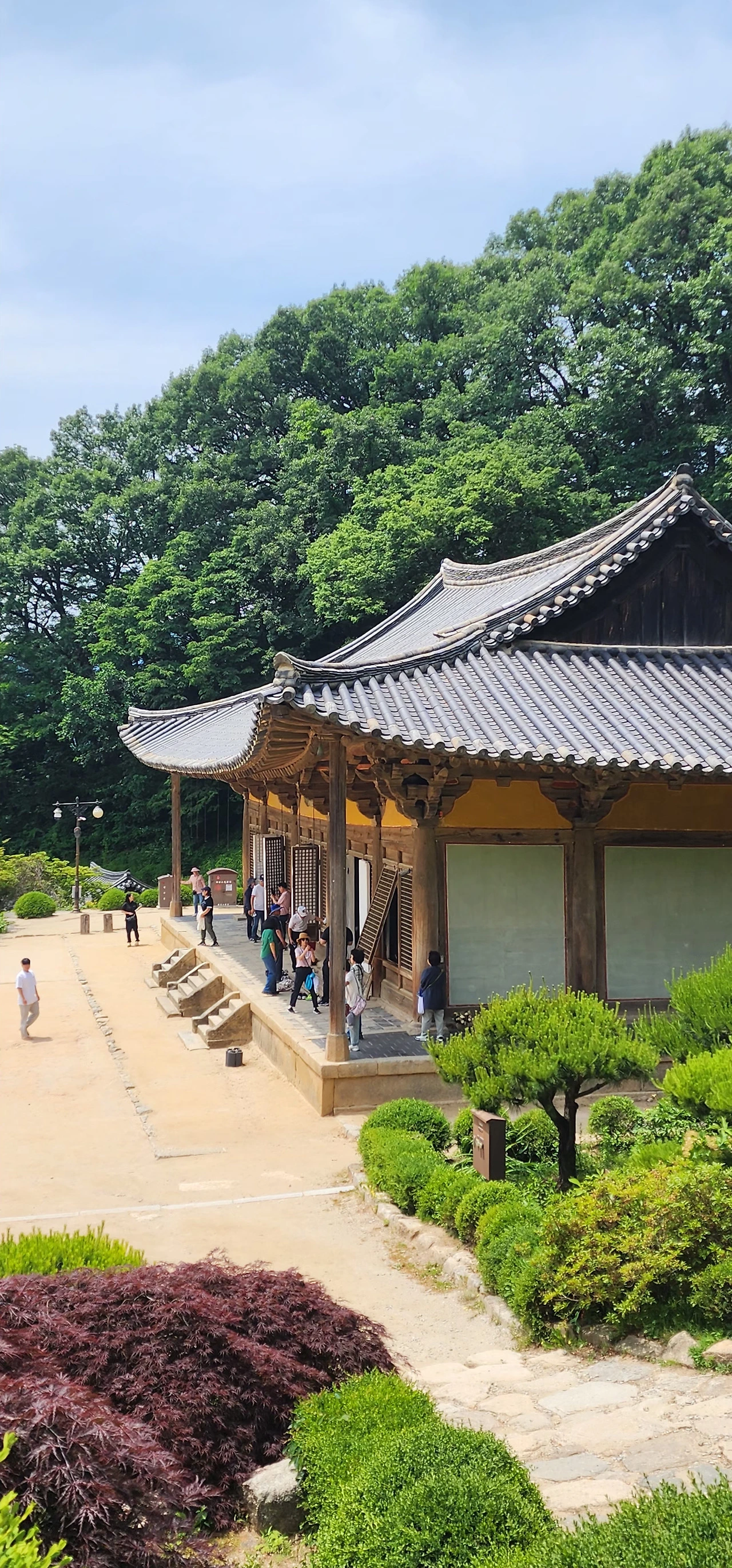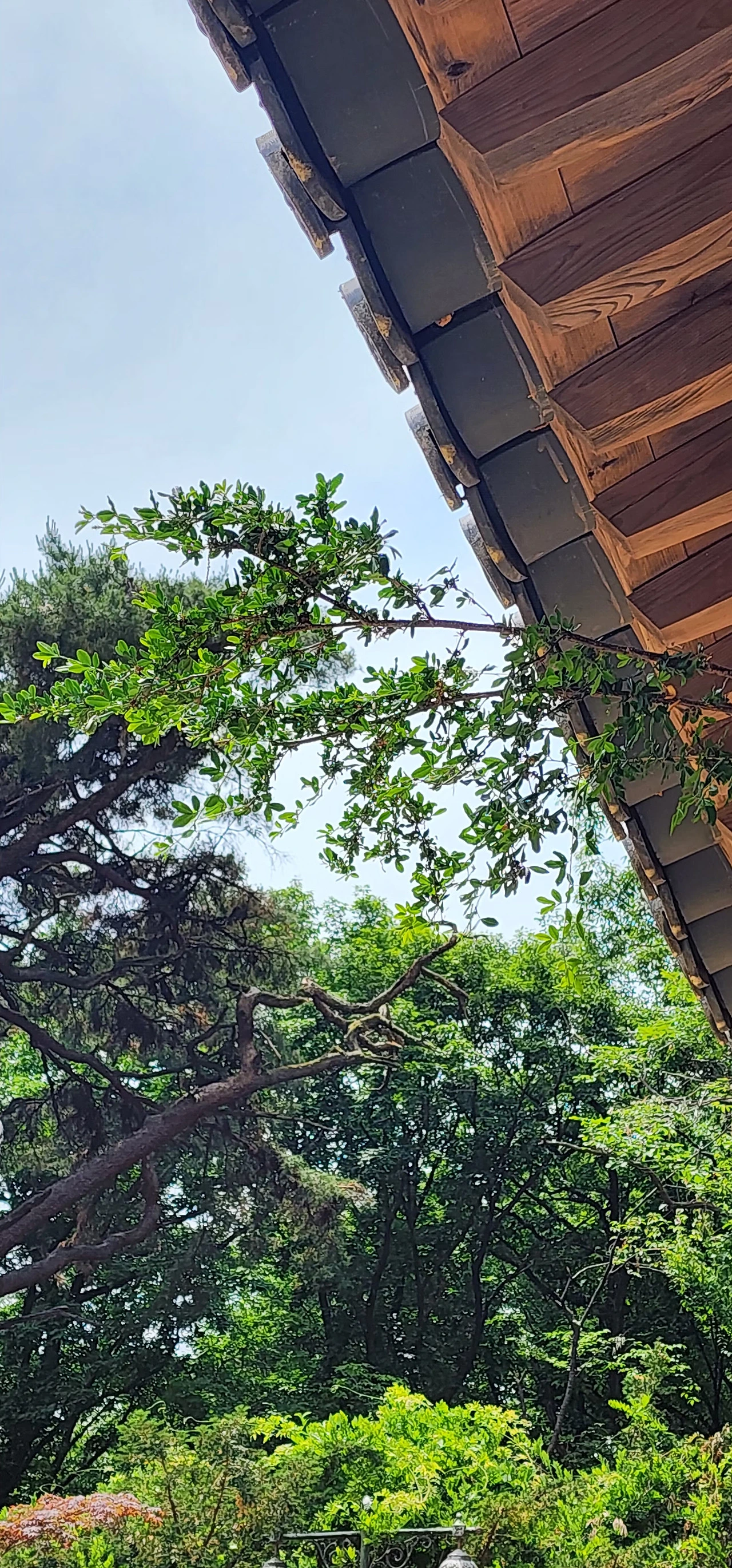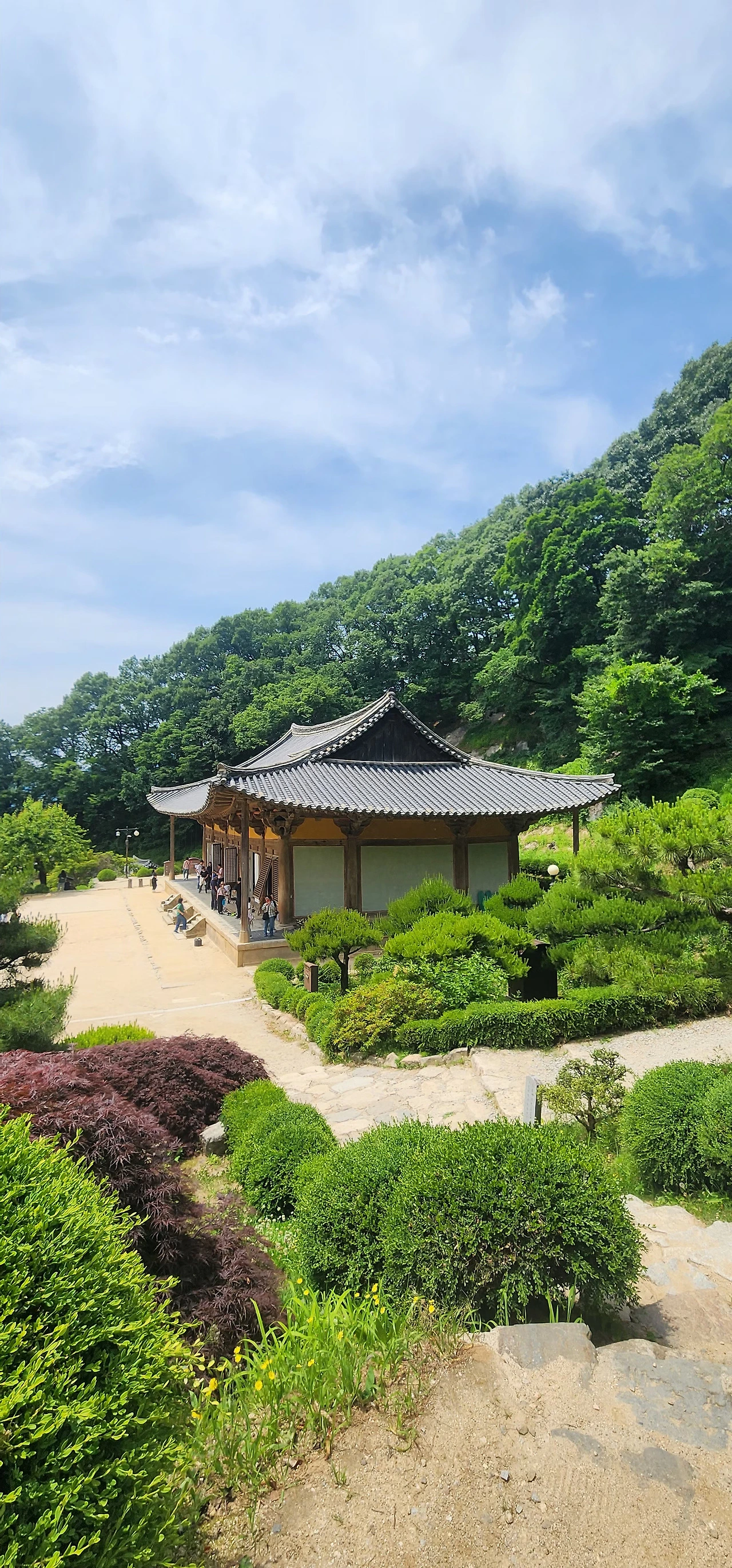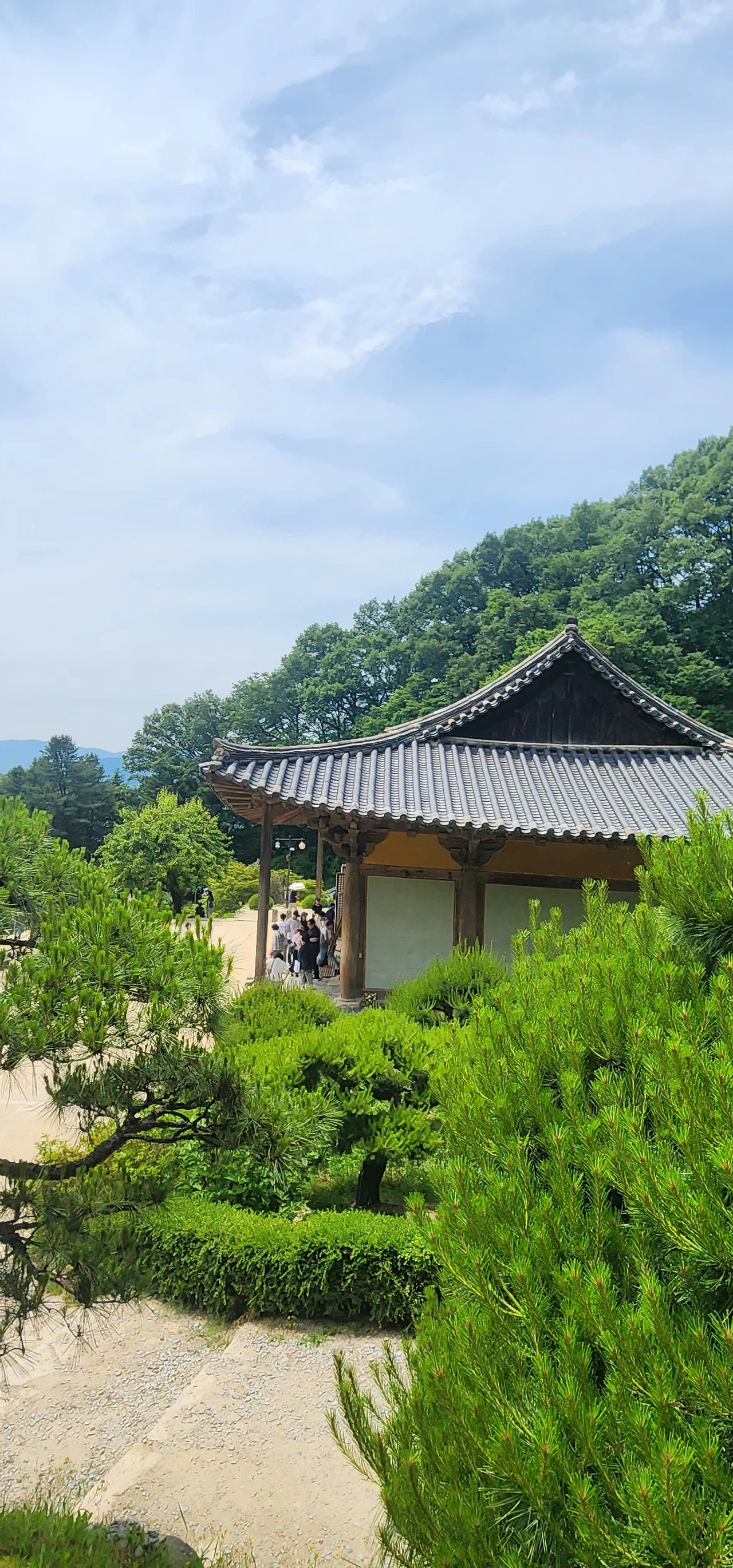 걷기 아름다운 작은 길, 관음전 가는 길의 갈림길에서 멈춰 섰다. 포토타임이다. 푸른 숲과 어우러진 돌길과 낮은 기와 담장이 만드는 풍경 그늘이 시원했다. 바람이 살랑이는 풍경은 무량수전 앞마당에서 바라본 풍경과는 대조적이었다.
