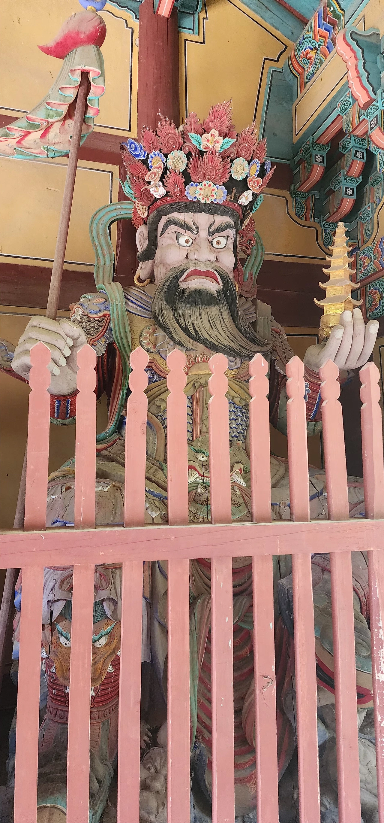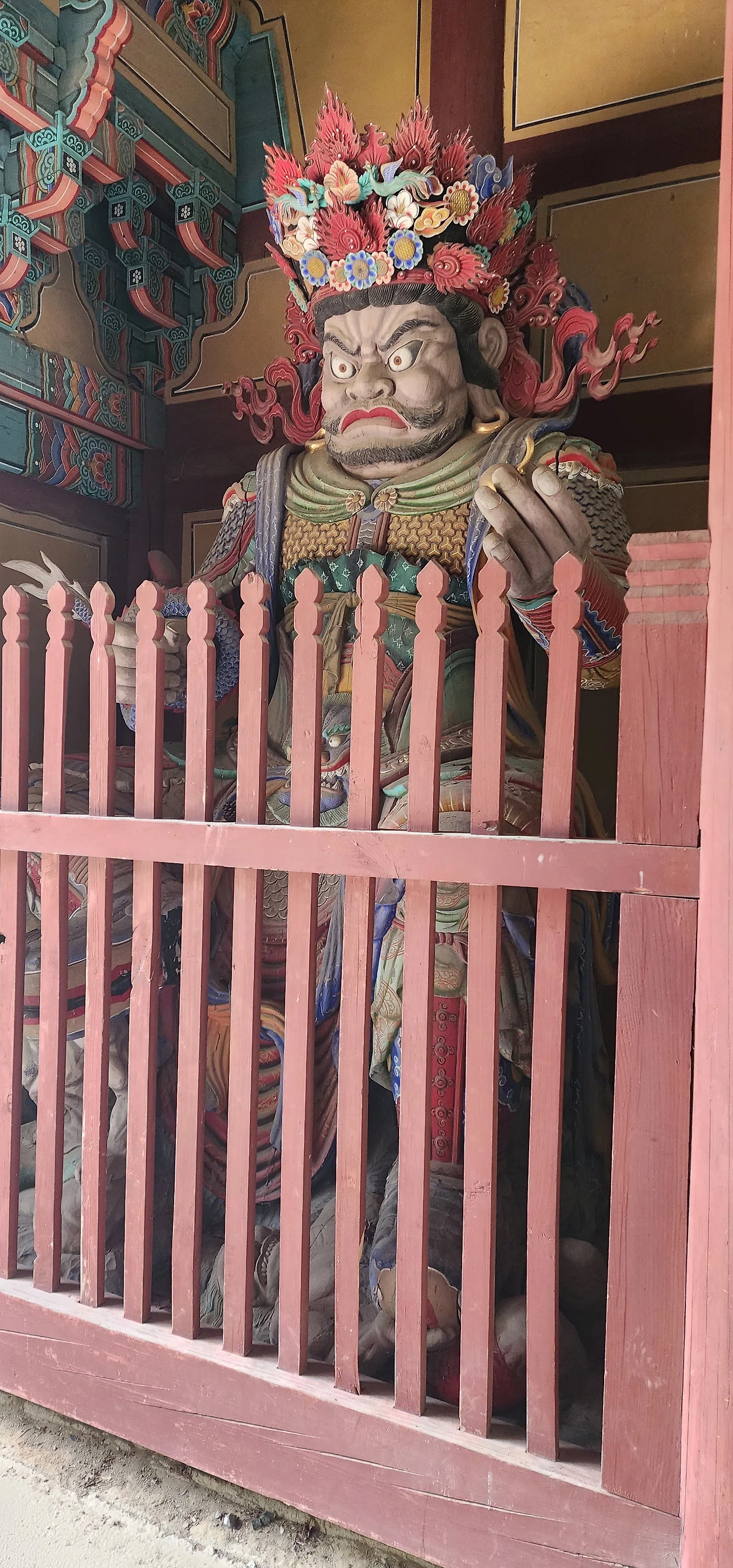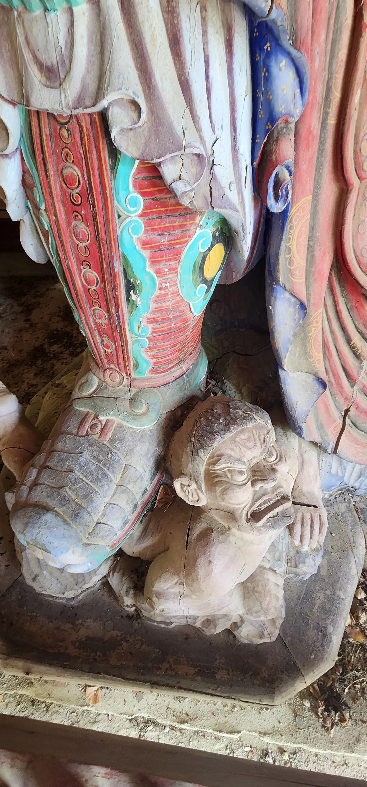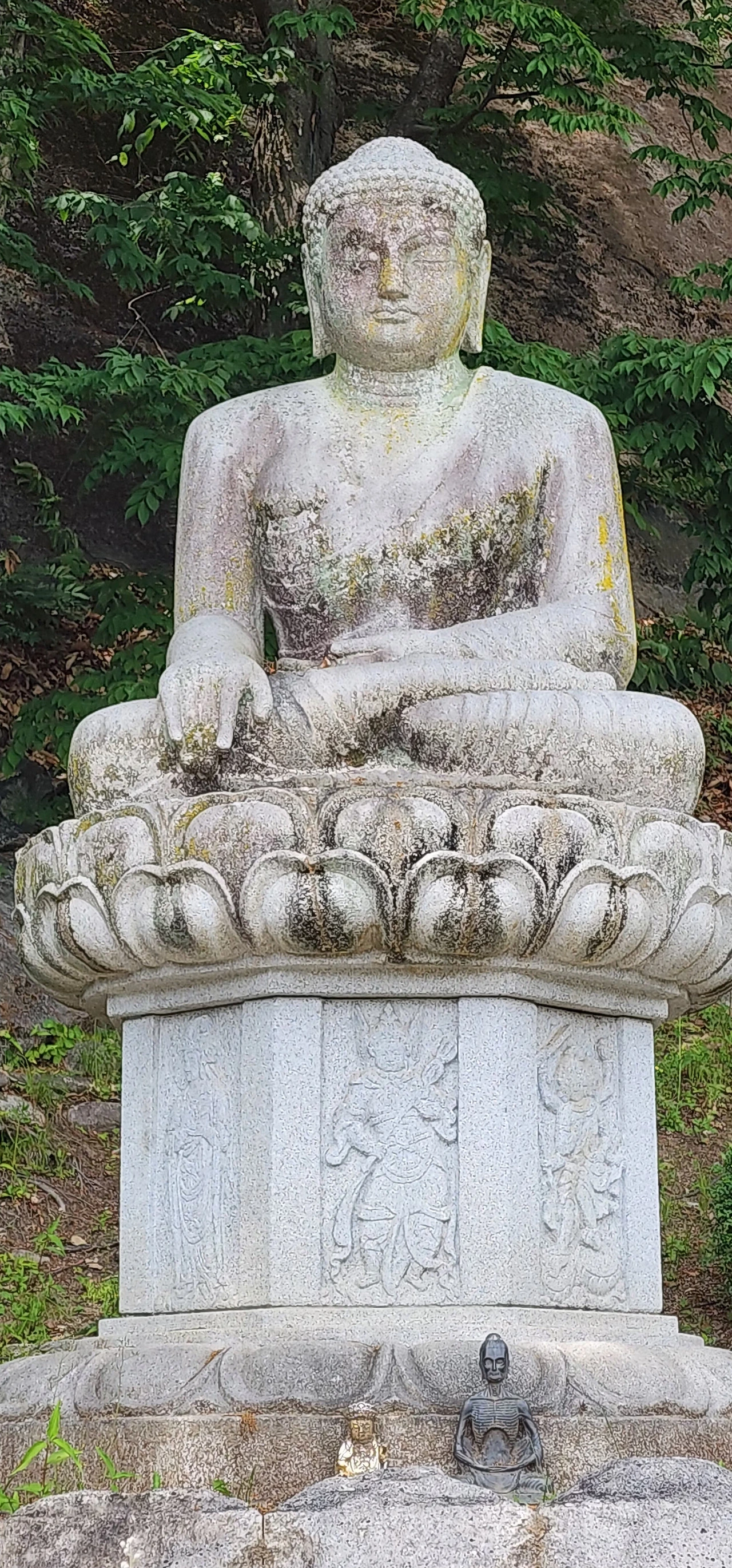 일주문을 지나 사천왕상을 보았다. 왠지 반가운 마음도 일었다. 걷다가 다시 되돌아와서 사천왕상 발 밑을 찍었다. 어떤 카타르시스가 일렁이는 것도 같았다. 아주 예전에는 다소 무서운 느낌을 주었는데, 이 해학적인 사천왕상의 이미지들과 발밑에 깔려 소리치는 인간 군상의 표정에서, 그동안 많이 단련되었나 보다 싶었다. 살아온 시간들이 많은 것을 무화시켰나 보다. 웃으며 지나가는 길이었다.