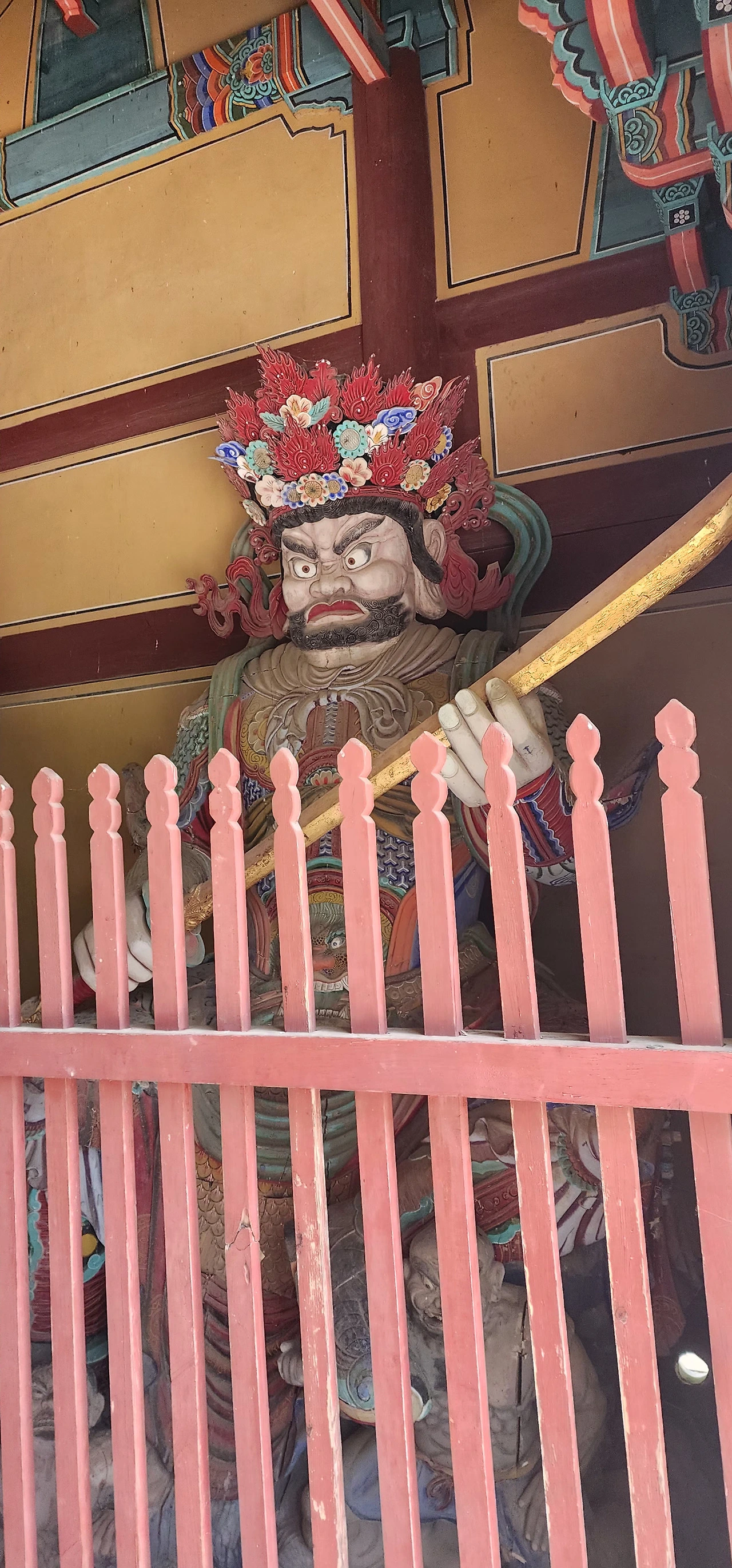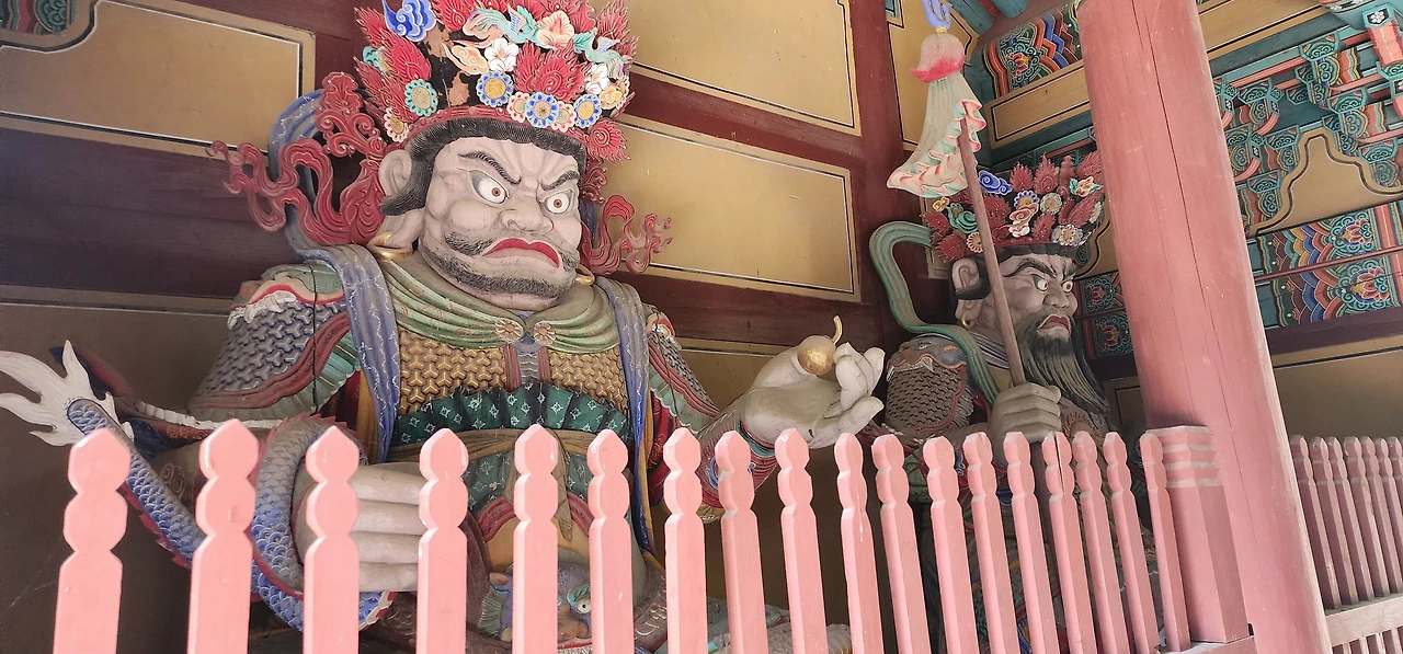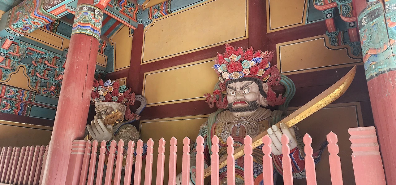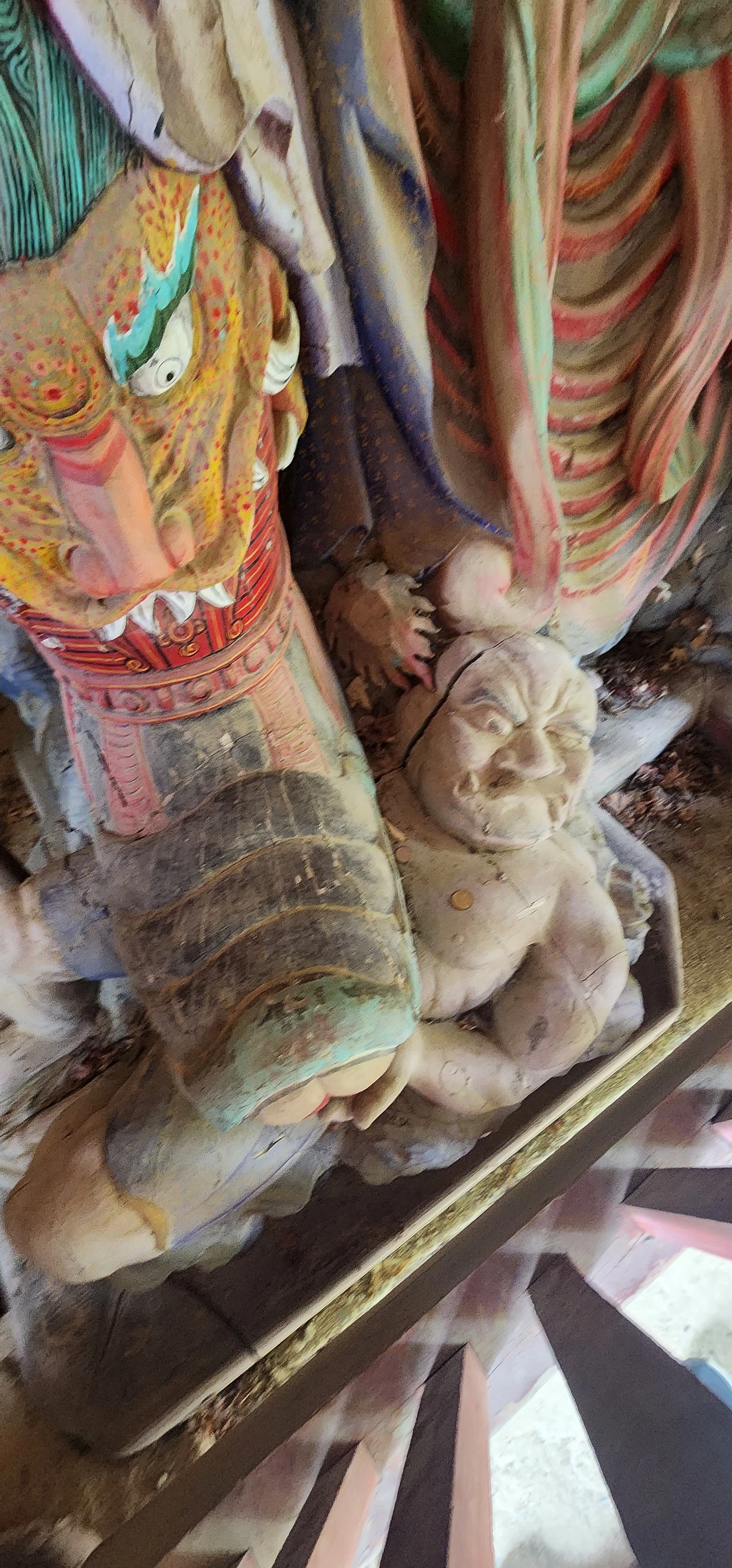 일주문을 지나 사천왕상을 보았다. 왠지 반가운 마음도 일었다. 걷다가 다시 되돌아와서 사천왕상 발 밑을 찍었다. 어떤 카타르시스가 일렁이는 것도 같았다. 아주 예전에는 다소 무서운 느낌을 주었는데, 이 해학적인 사천왕상의 이미지들과 발밑에 깔려 소리치는 인간 군상의 표정에서, 그동안 많이 단련되었나 보다 싶었다. 살아온 시간들이 많은 것을 무화시켰나 보다. 웃으며 지나가는 길이었다.