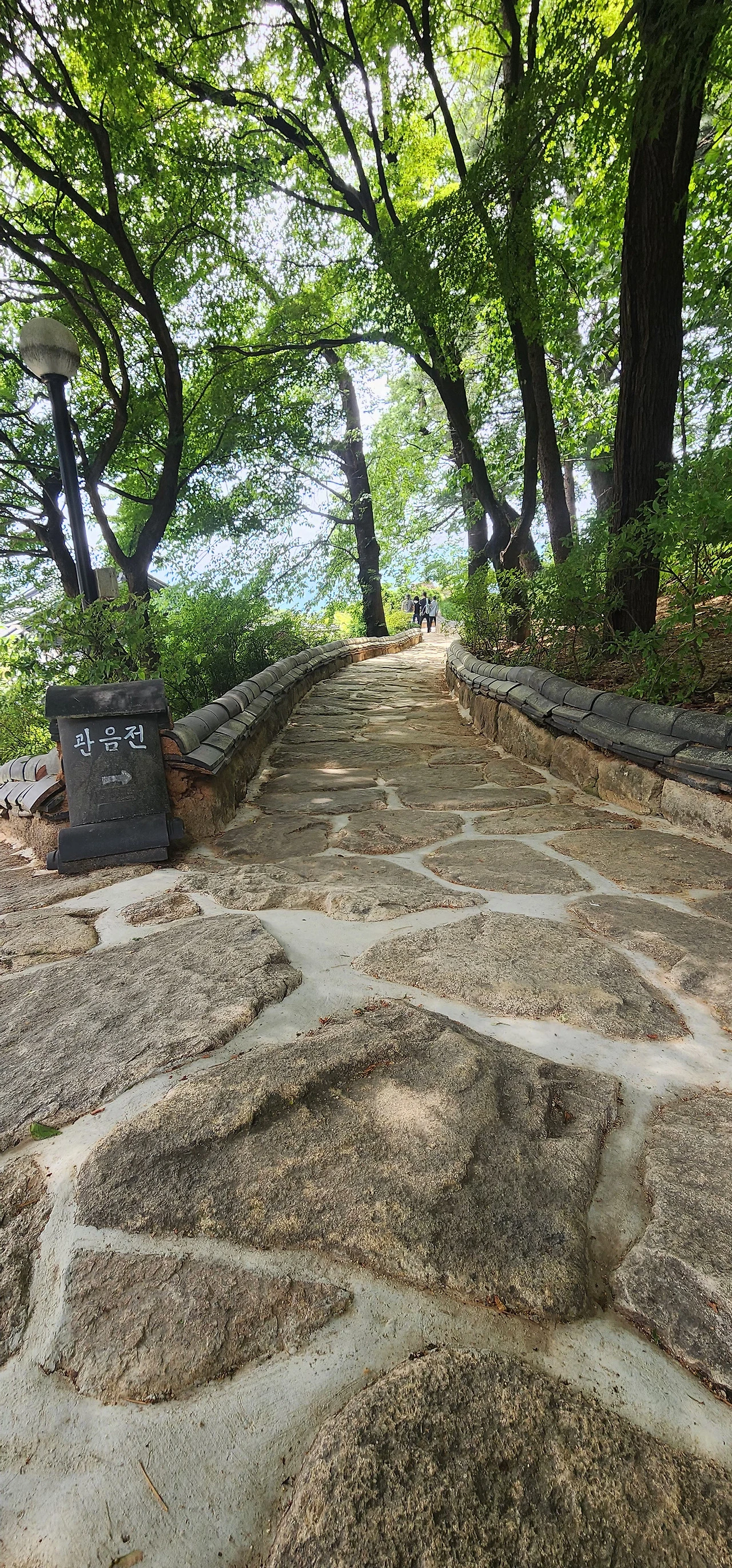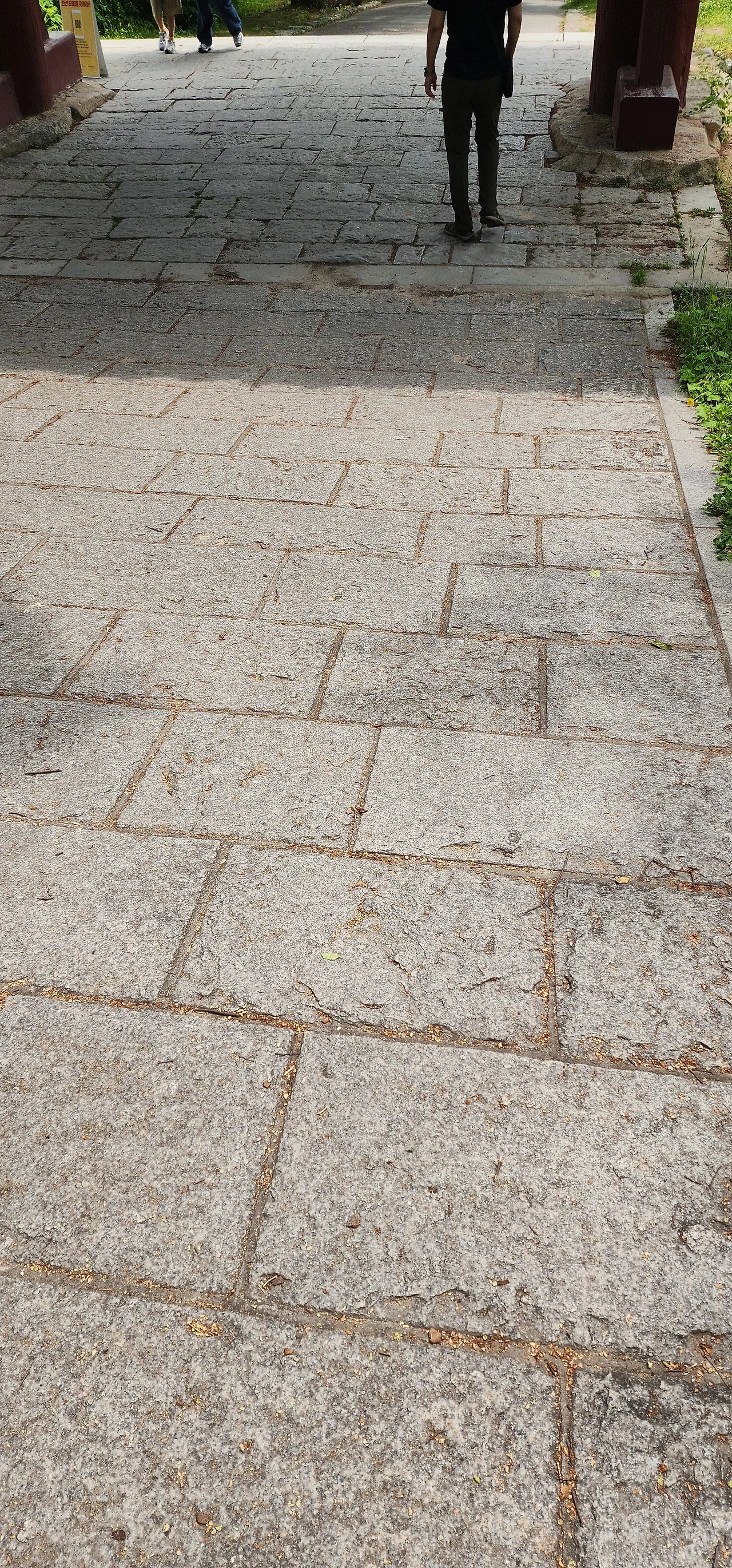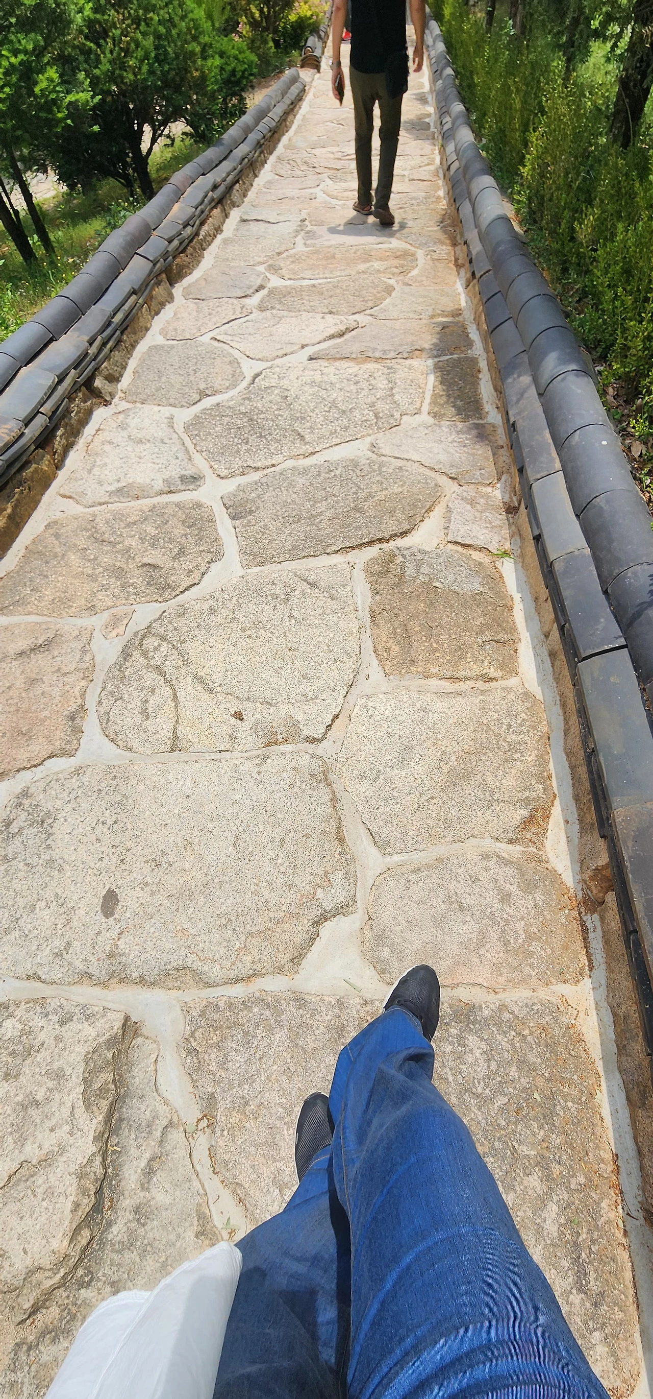 넓적한 돌바닥 길을 다시 걸어 내려오면서 이번엔 앞 정강이가 당기는 느낌이 들었다. 얼마나 안 걸었으면, 고작 그 정도 오르고 내려온다고 앞 정강이에 통증을 느낄까! 싶었다. 오르락내리락하며 걷지 않고 평지만 걸어서일까.