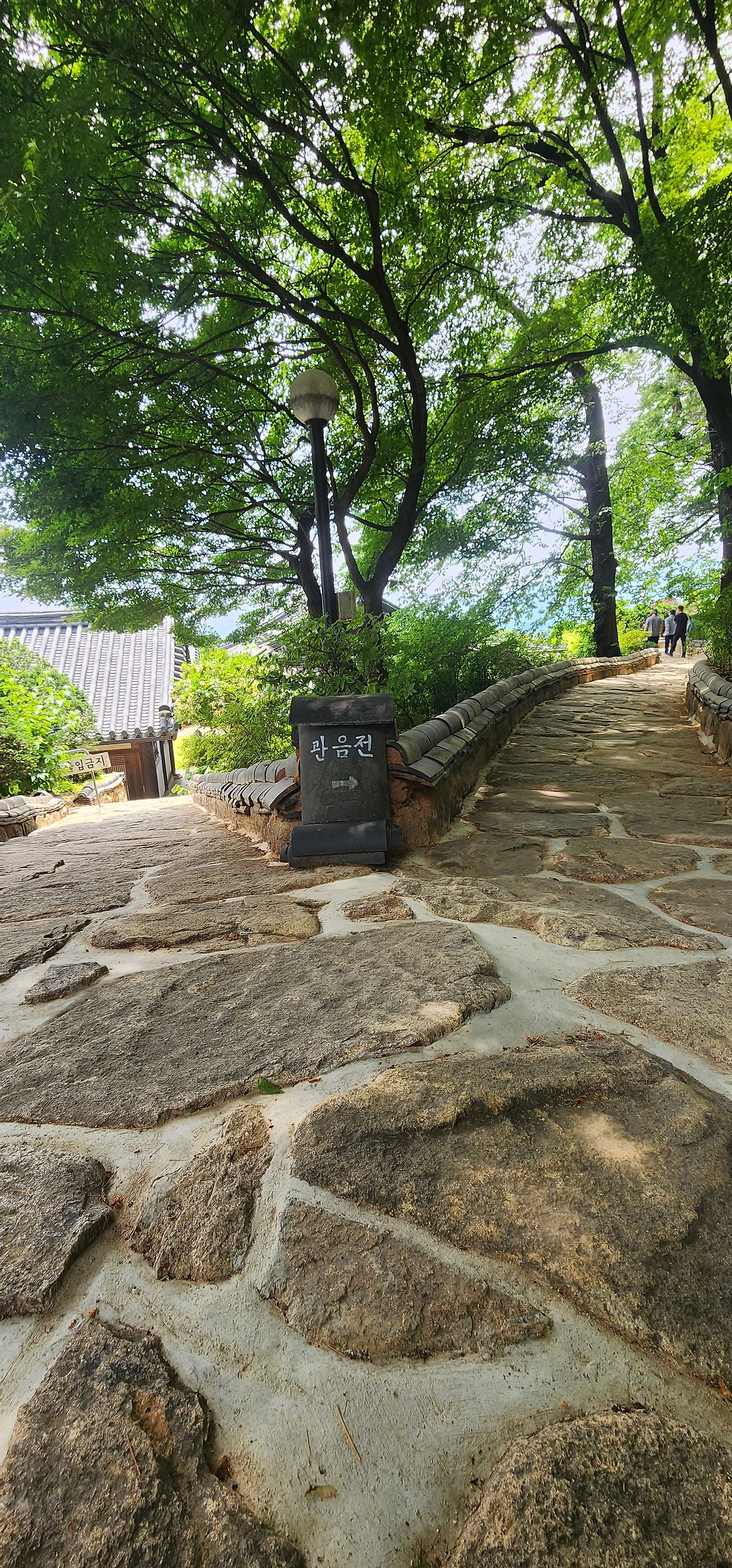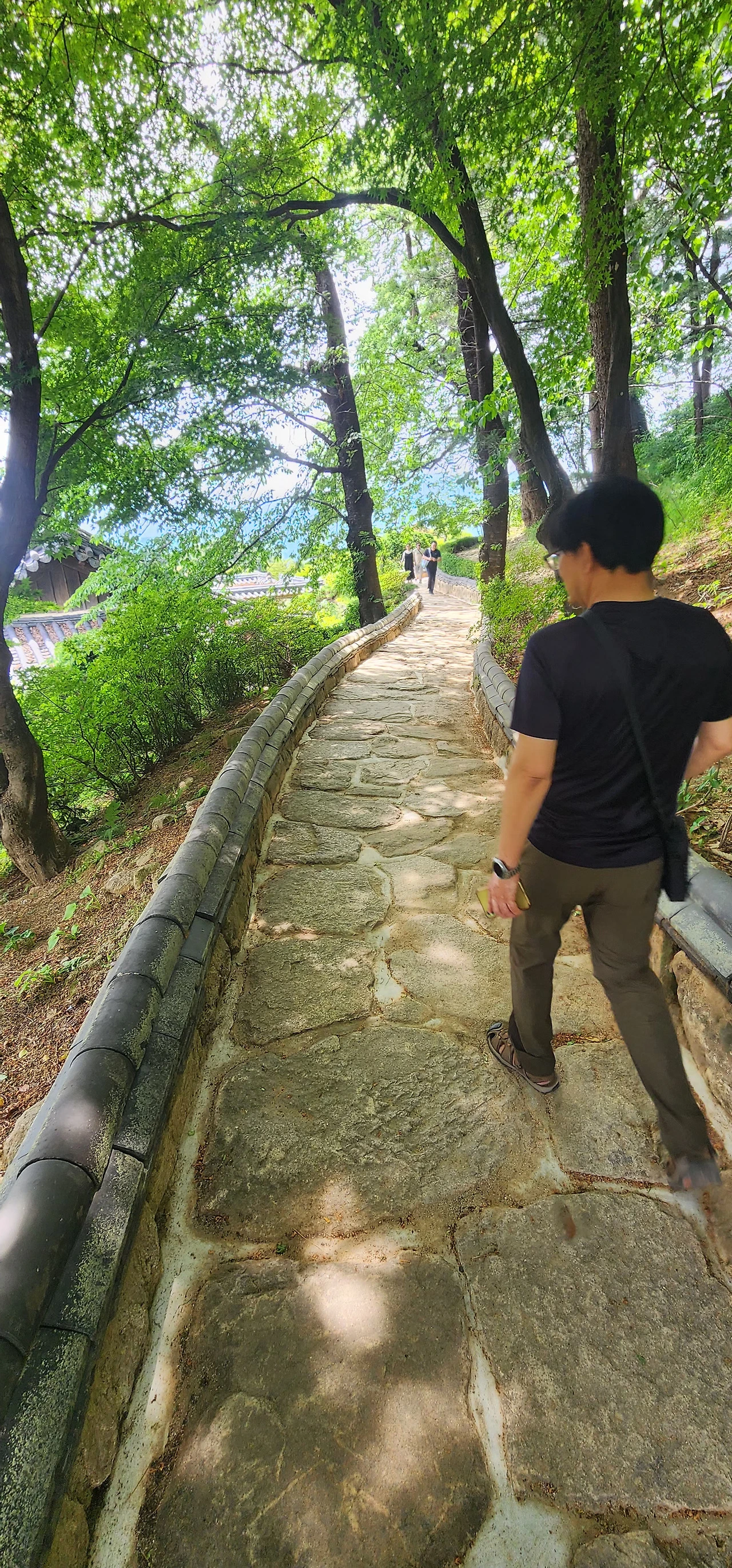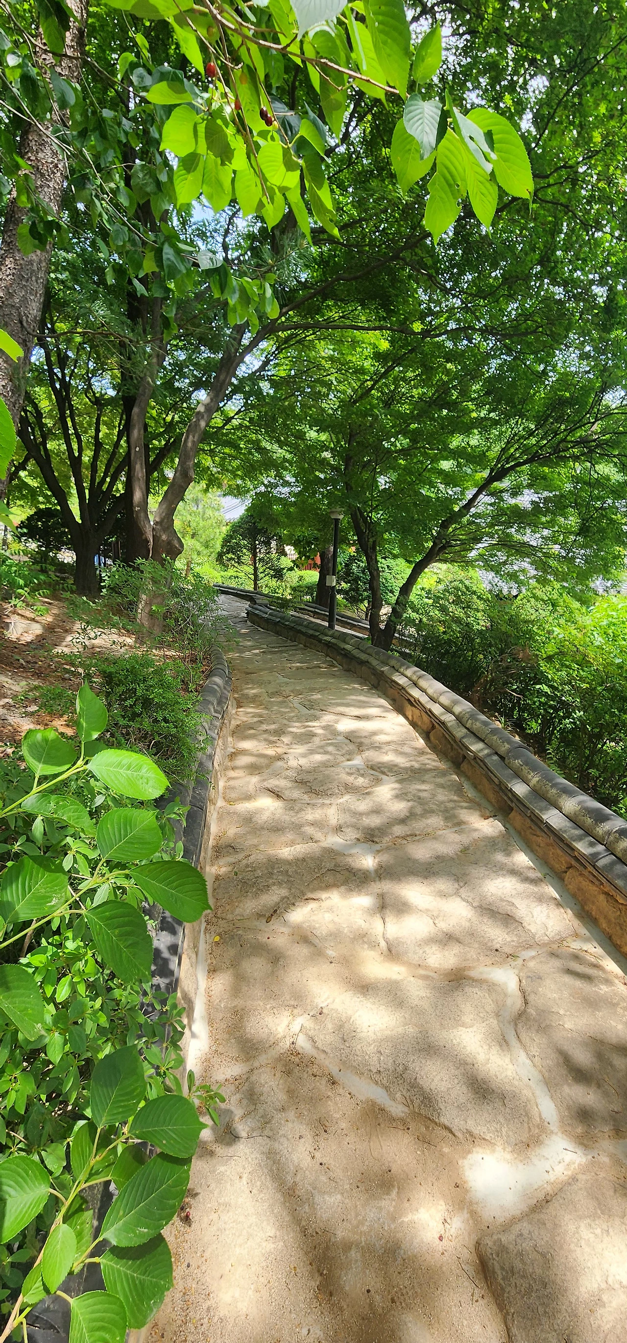 넓적한 돌바닥 길을 다시 걸어 내려오면서 이번엔 앞 정강이가 당기는 느낌이 들었다. 얼마나 안 걸었으면, 고작 그 정도 오르고 내려온다고 앞 정강이에 통증을 느낄까! 싶었다. 오르락내리락하며 걷지 않고 평지만 걸어서일까.