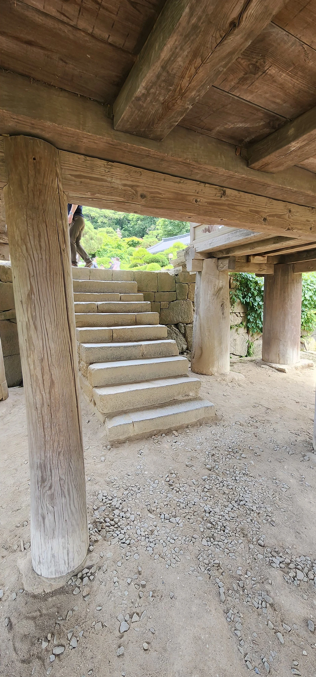 위로 계속 상승하는 길, 안양루에 오르는 "누하진입(樓下進入)"구조를 지닌 계단을 올랐다. 누군가 안양루에 걸린 시조를 설명해주고 있었다. 누하진입 구조는, 누각 아래로 들어간다는 뜻이라고 한다.