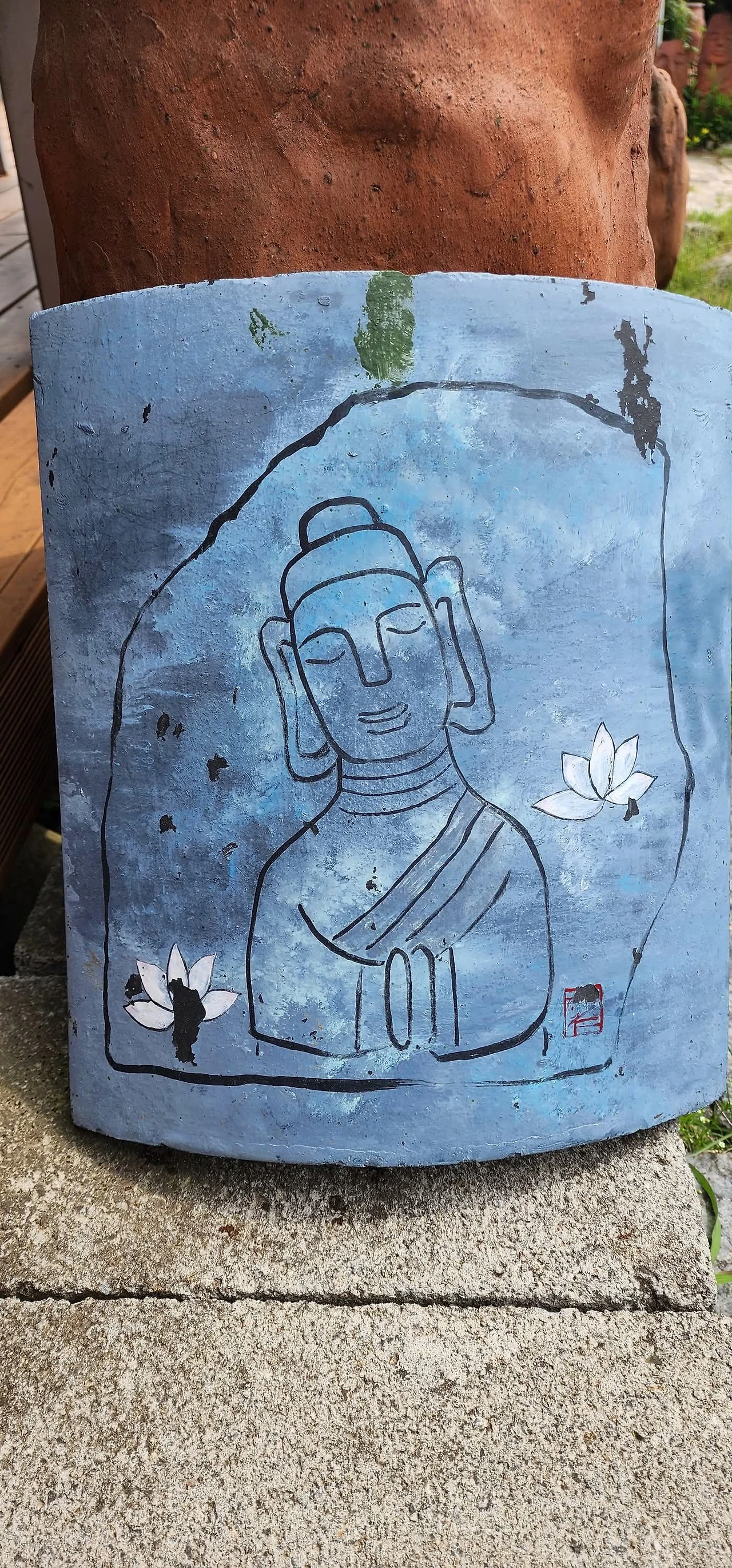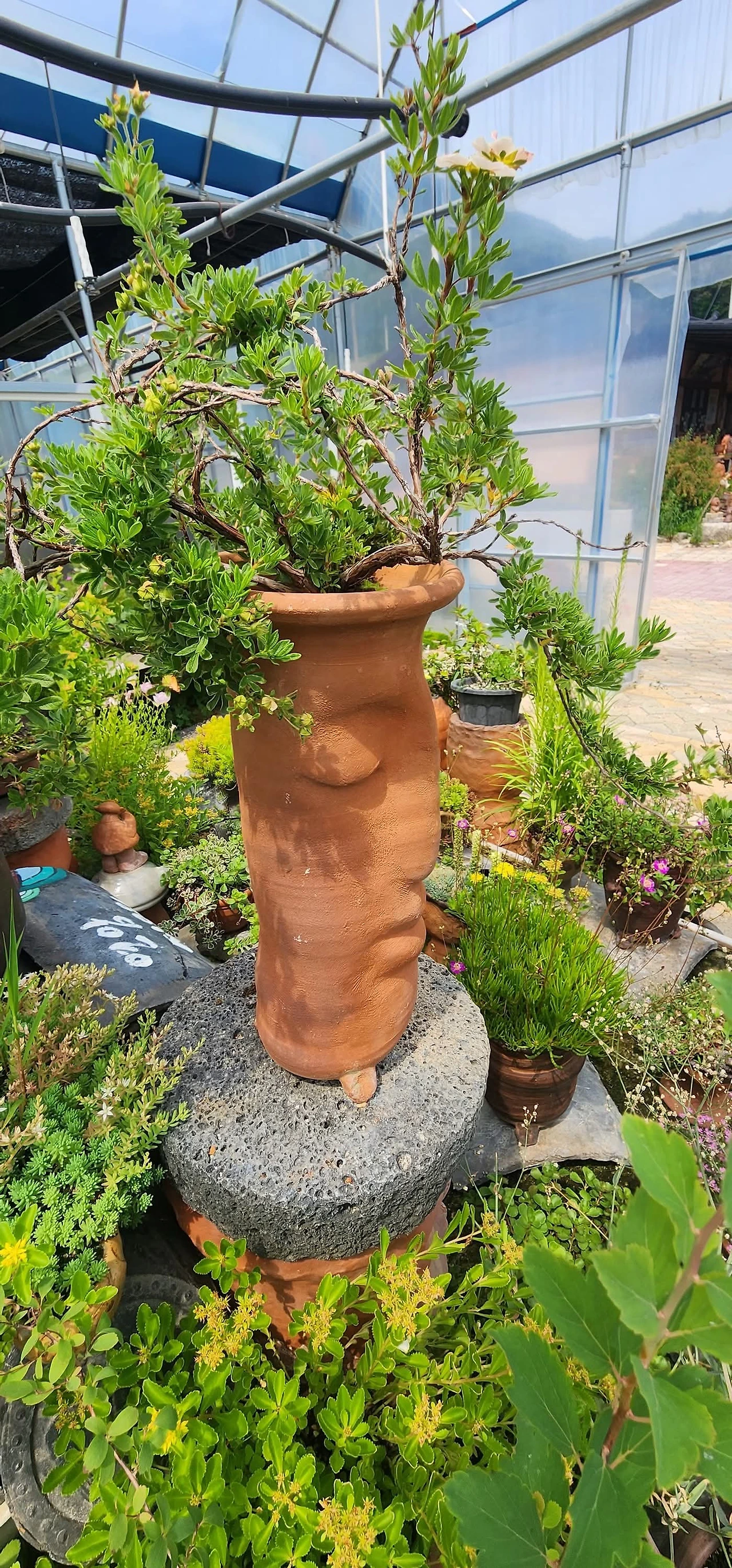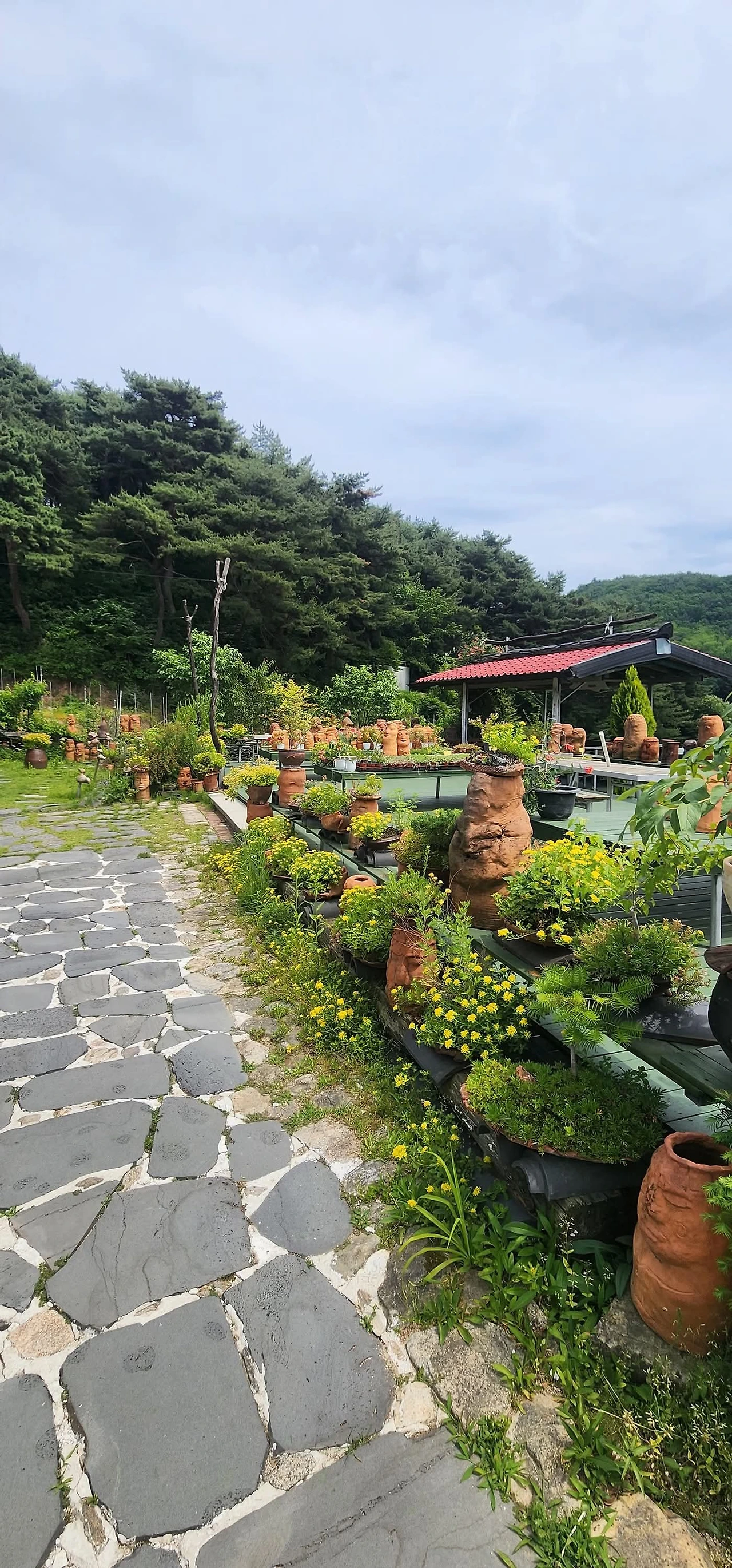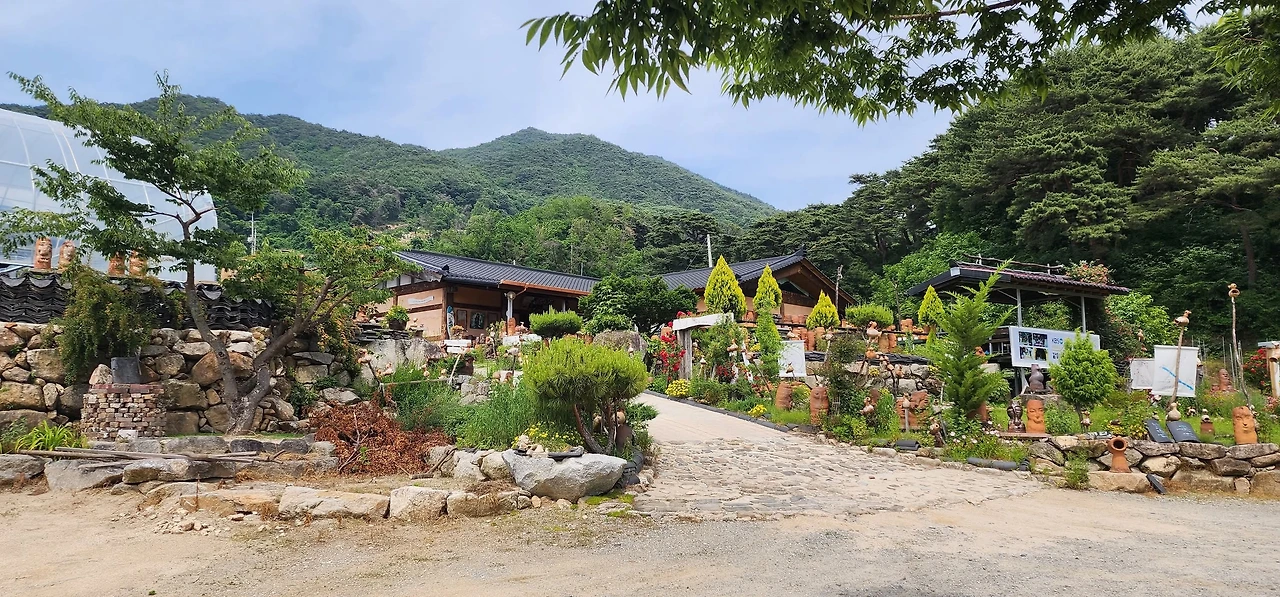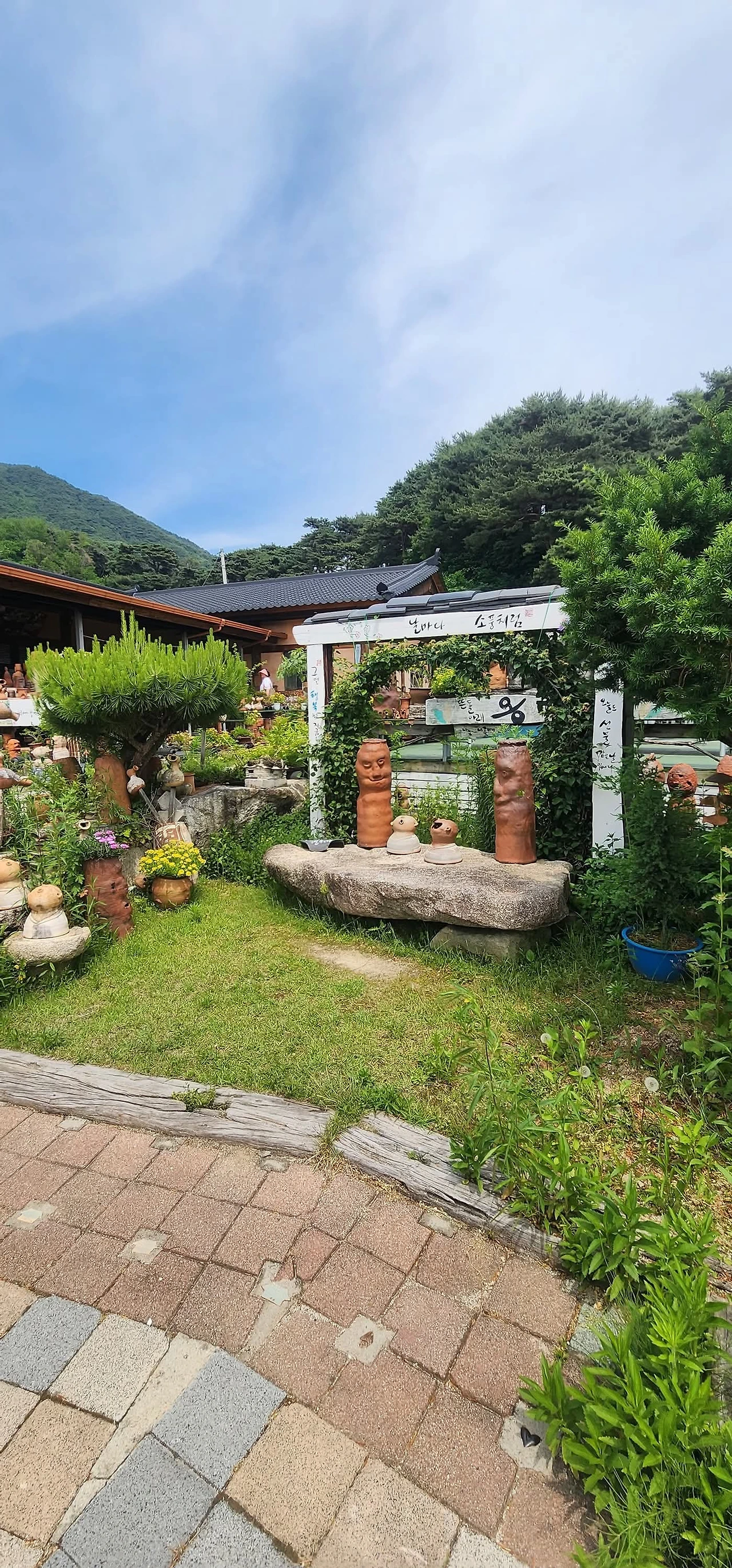 이번에도 정말 무인찻집일까? 하는 호기심에 올라가 보았다. 비교적 널따란 대지에 형성된 도자기 공방이었다. 마당 겸 정원엔 토우들과 식물들이 한데 어우러져 있었다. 이러한 풍경은 다소 예전에 자주 접하던 풍경 그대로였다.