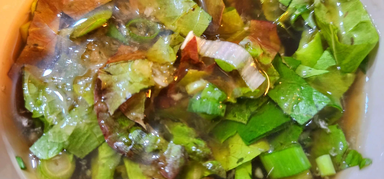 텃밭 여름 잎채소는 약간의 쓴맛이 올라온다. 송송 썰어서 쯔유 국물에 넣어 보았다. 먼저, 간 무 경단(다이콘 오로시)을 냉수와 섞어 희석한 쯔유 국물에 넣은 후 섞고, 송송 실파를 넣고 메밀면을 넣고 먹어 보았다.