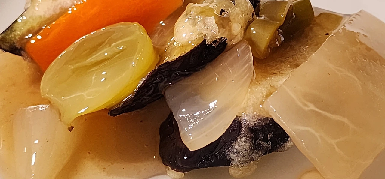 후에, 반죽에 강황가루를 넣어 보았다. 주황빛 색상이 나니 색상은 좀 더 그럴싸해 보였다. 그런데 계란 흰자를 넣어버렸더니 바삭한 맛이 사라져 버렸다. 탕수육 소스가 남아서 가지 탕수육을 다시 해봤는데, 이번 것은 실패였다. 에어프라이기에 넣고 돌려봐도 바삭함은 되살아나지 않았다. 바삭함이 없으니 다소 느끼해졌다.