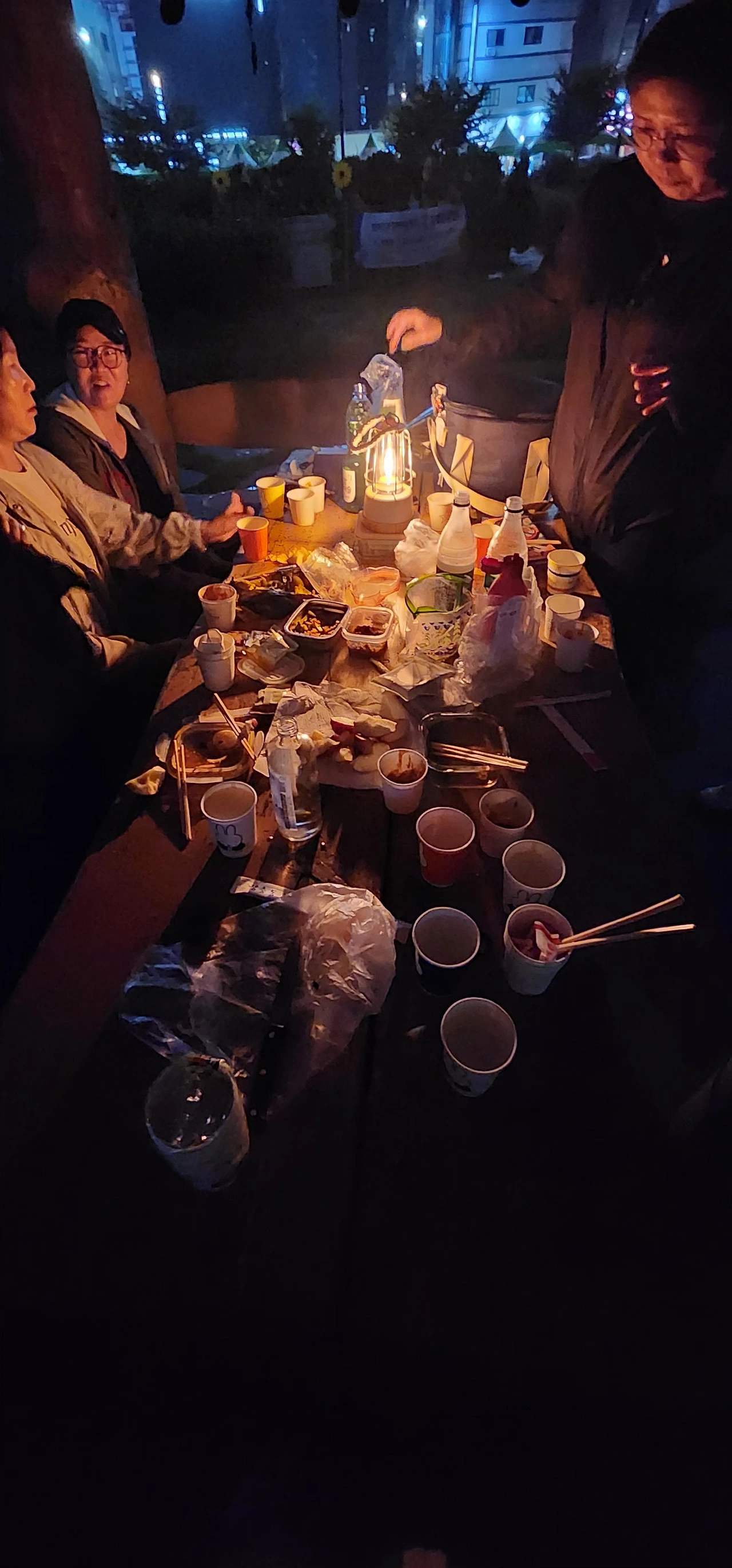 오두막 바깥은 가을비가 계속 내리고 있었다. 오두막 안까지 비는 들치지 않았지만 점차로 쌀쌀해졌다. 한 언니가 외투를 벗어주었다. 갱년기라 다들 춥지 않다고 하였다. 그래, 나는 치마를 입어서 추웠던 것이다. 그래도 외투를 머리에 썼다. 따뜻했다.