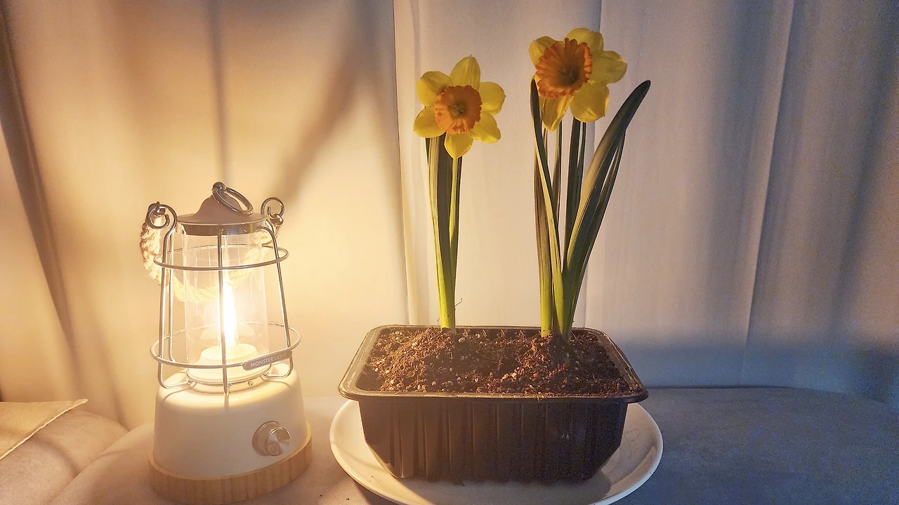 이제는 수선화를 왜 키우는지 알겠다. 동네 공원 화단에 수선화가 군락으로 피어 있을 때는 향기 맡고 사진 찍고 감상만 하였다. 수선화를 직접 구입하여 구근을 쪼개서 화분에 옮겨 심고, 그새 이렇게 자라서 꽃을 피우니 어떤 희열도 느껴졌다. 마음이 동하여 신체를 움직이고 그 움직임을 통하여 전에는 없던 꽃이 내 앞에 이렇게 피어 있는 보습을 보니, 어떤 감흥이 나에게 찾아왔다. 집 안에서 이렇듯이 단촐하게 피는 그 모양이 참으로 어여쁘도다. 아니 귀엽도다. 군락으로 있을 때보다 단독으로 있을 때 존재감 뿜뿜 하는 수선화로다. 두 종류를 샀는데, 노란 꽃 수선화는 키가 작고 꽃잎이 여섯 개인 것을 보니, 이름이 '러브데이 loveday'인가 보다. 너의 이름이 러브데이였구나. 어쩐지 사랑스러운 꽃이라고 생각했다.