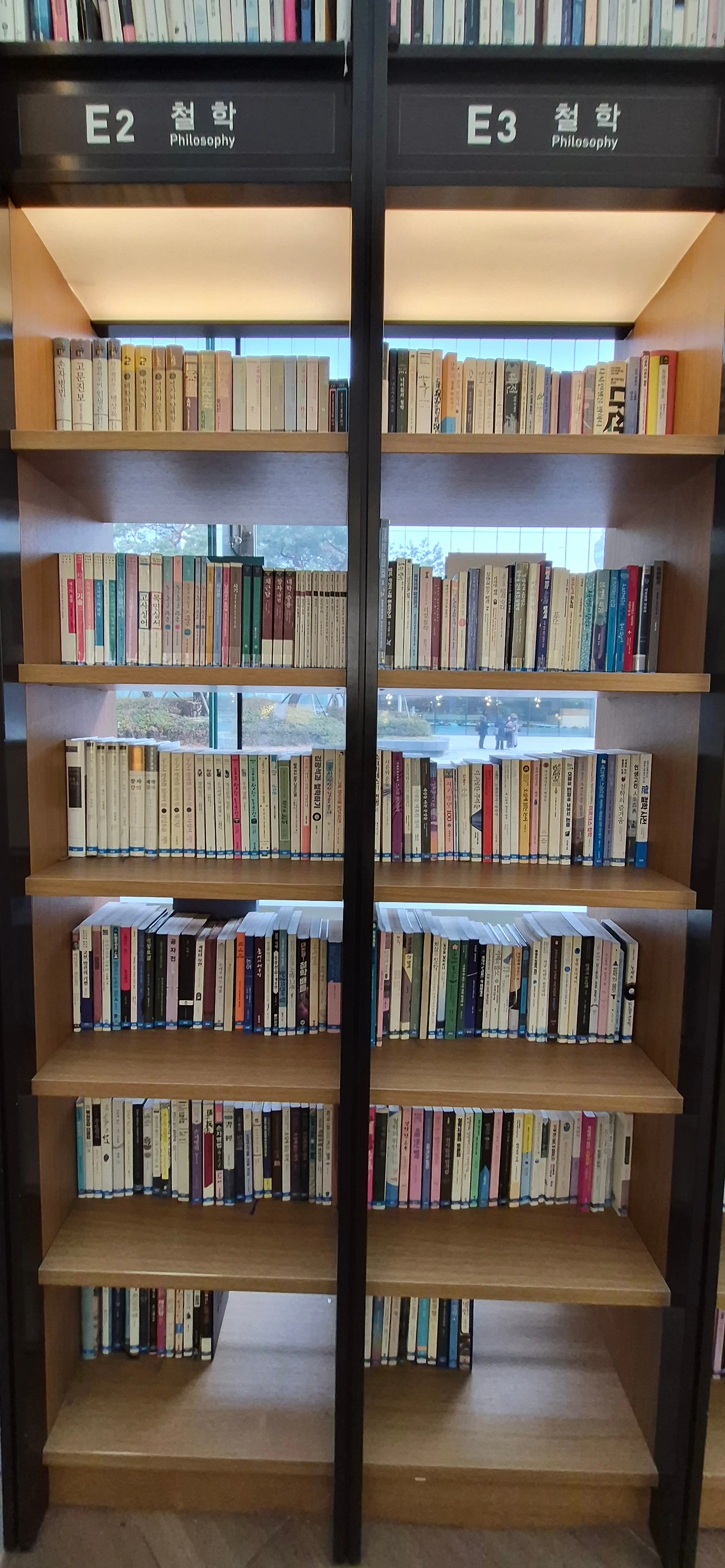 별마당의 책들을 둘러보았다. 표지가 오래된 책들이 주로 비치되어 있었다. 아, 그렇구나 했다. 2층으로 올라갔더니 철학책 코너가 보였다. 달랑 두 칸이었다. 순간 내 안에서 정적이... 왜? 하는 생각이 들었다. 철학책은 두고두고 보는 형태이기 때문에 기증을 하지 않고 모두 각자의 서가에 비치되어 있는 것인가? 보다 했다.