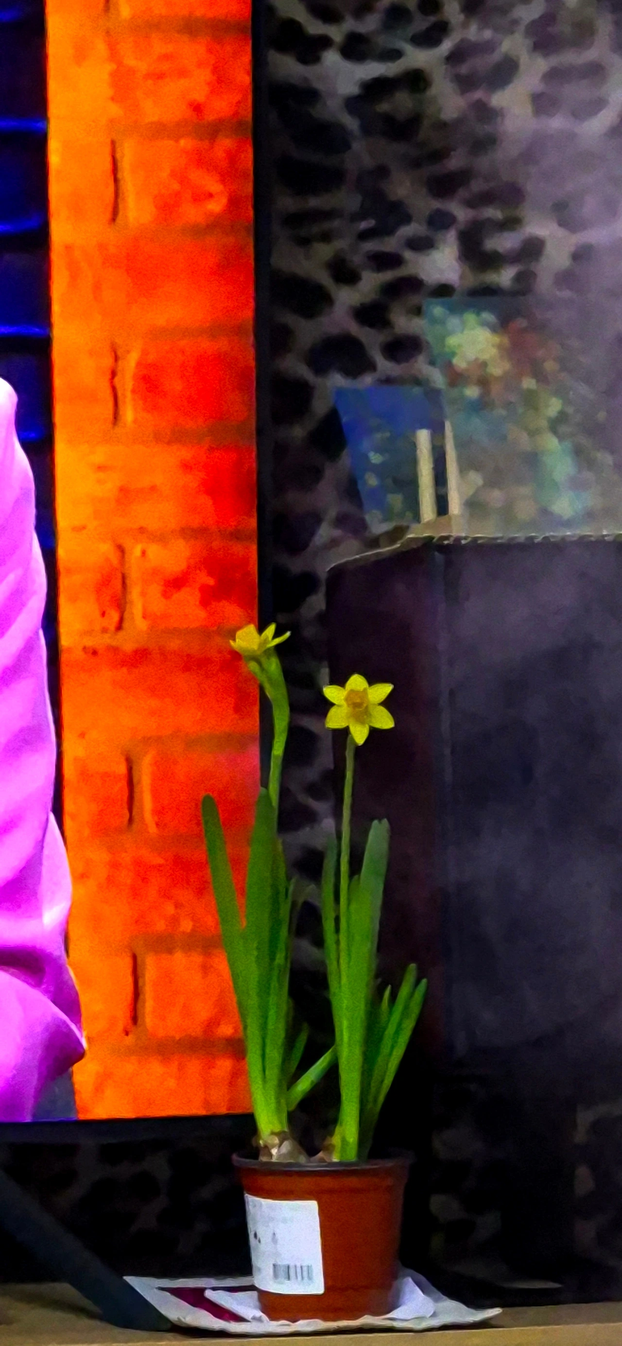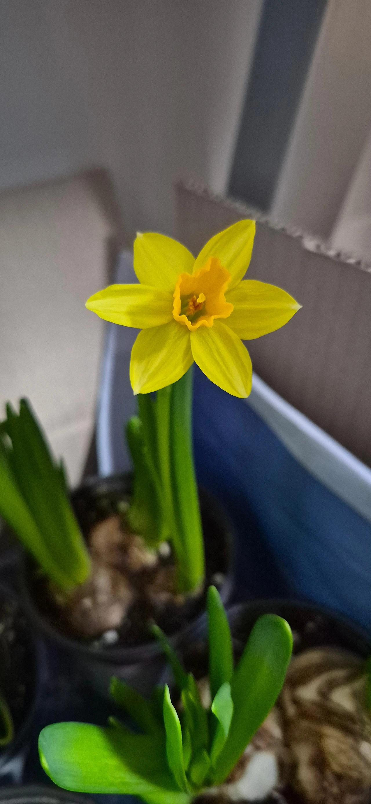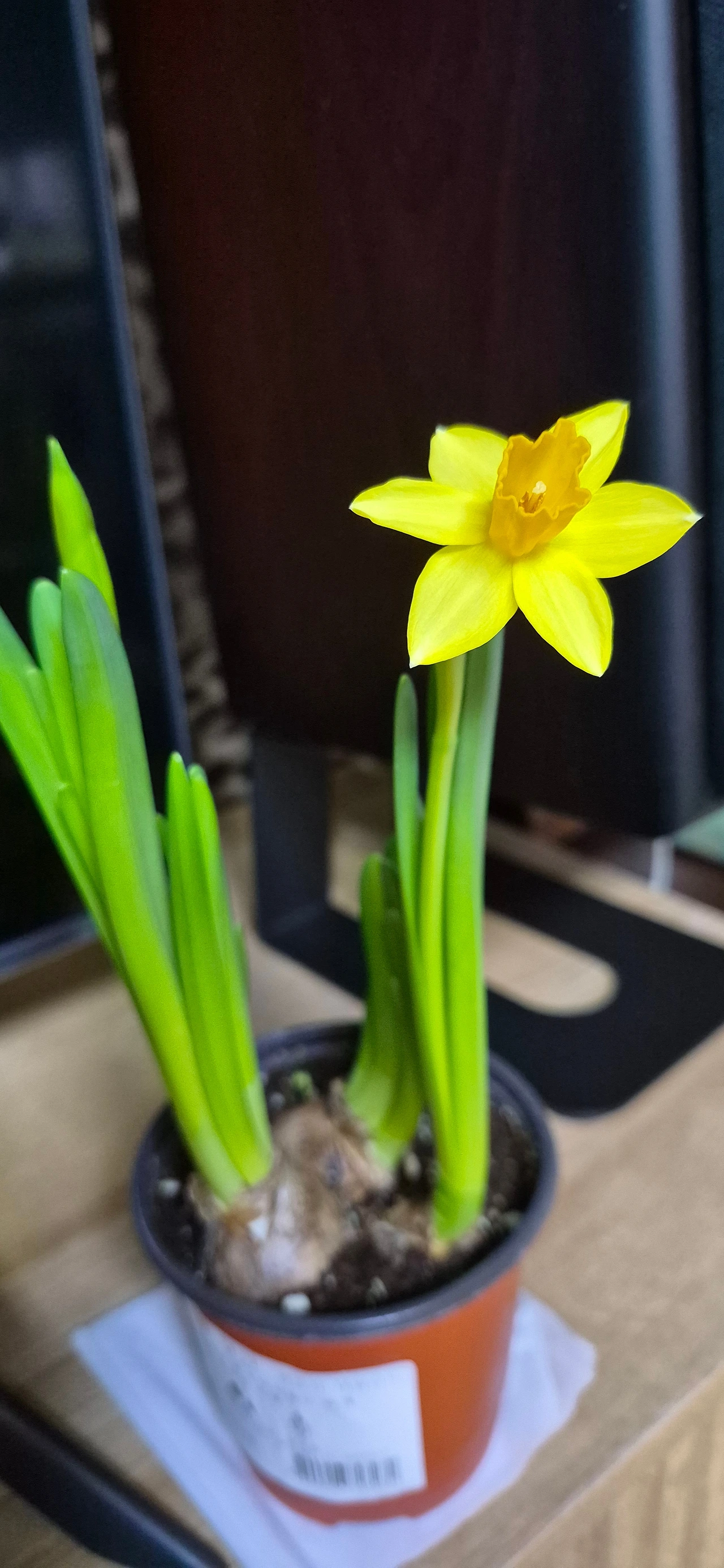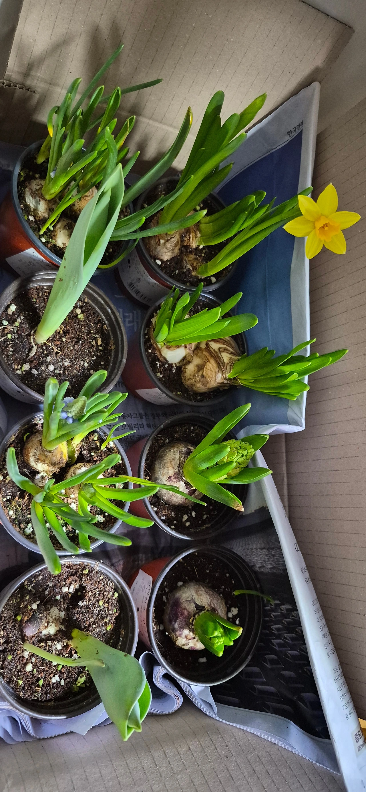 수선화를 실내에 두었더니 하룻밤 사이에 피었어. 수선화 향은 고급스러워. 고급스런 향을 내는 수선화 모양이 조화 같아 보여. 예쁜 화분으로 분갈이했다면 더 조화처럼 보였을 것 같아. 이미 피어났으니 가져온 그 상태 그대로 놓아두었지. 그랬더니 오히려 조화 같은 느낌이 줄었어. 이상도 하지, 예쁜 화분에 심어 놓으면 더 조화처럼 보인다는 것이. 쫑긋 길게 미어캣처럼 서 있는 모습이 참말 귀여워. 수선화를 보고 있으면 웃음이 나와