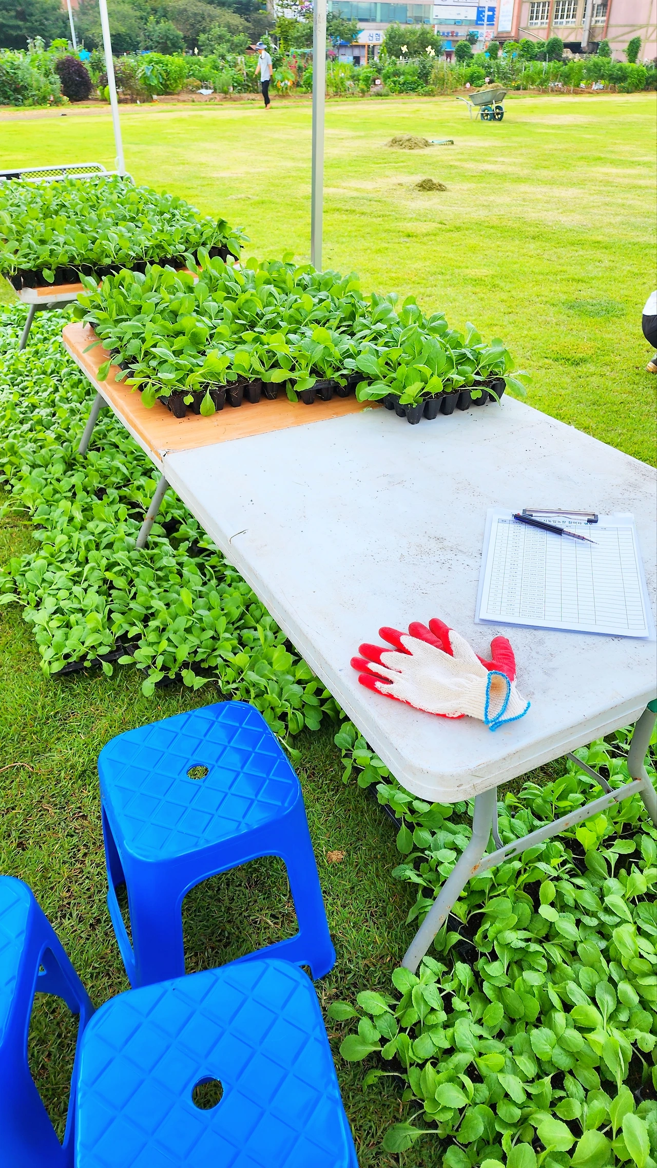 아침 8시 30분에 텃밭농장 잔디밭에 모였다. 사방에서 잔디밭으로 걸어오시는 텃밭 이웃들이 보인다. 우리는 늘 새롭게 만나듯이 인사를 나누었다. 바로 일을 시작하였다. 배추 모종판을 24개씩 잘랐다. 165개의 텃밭에 텃밭 당 24개의 배추 모종과 한 움큼씩의 쪽파 구근을 나누어 준다.