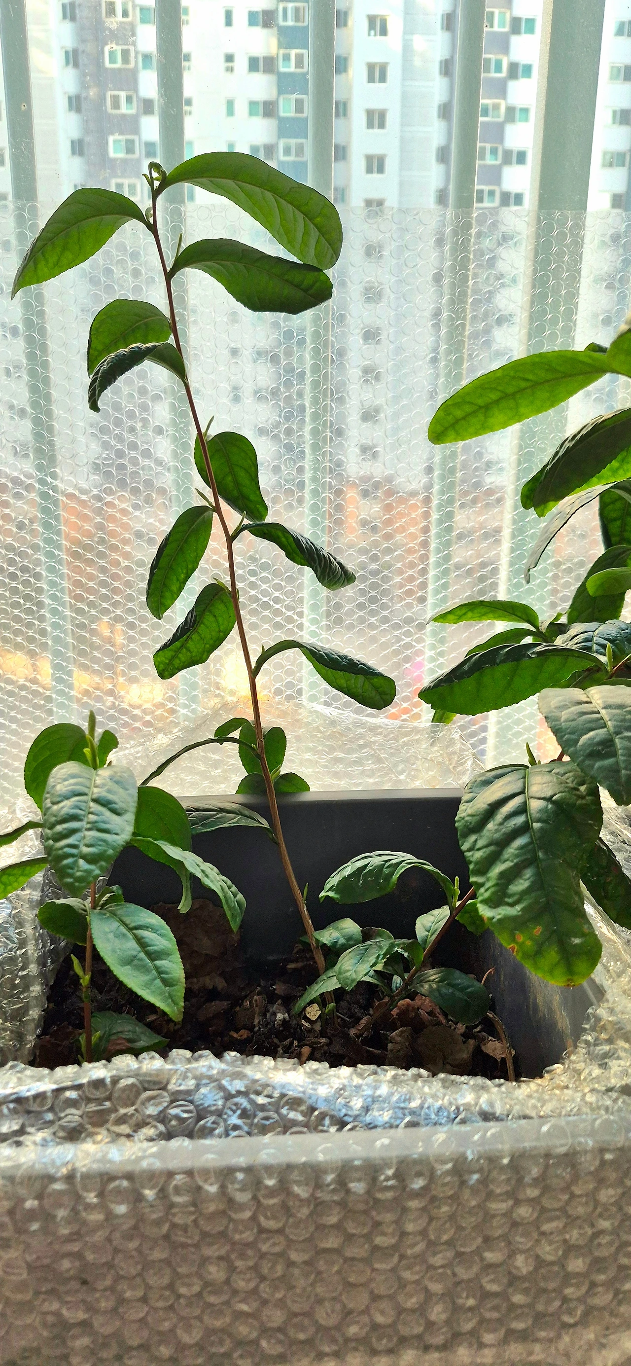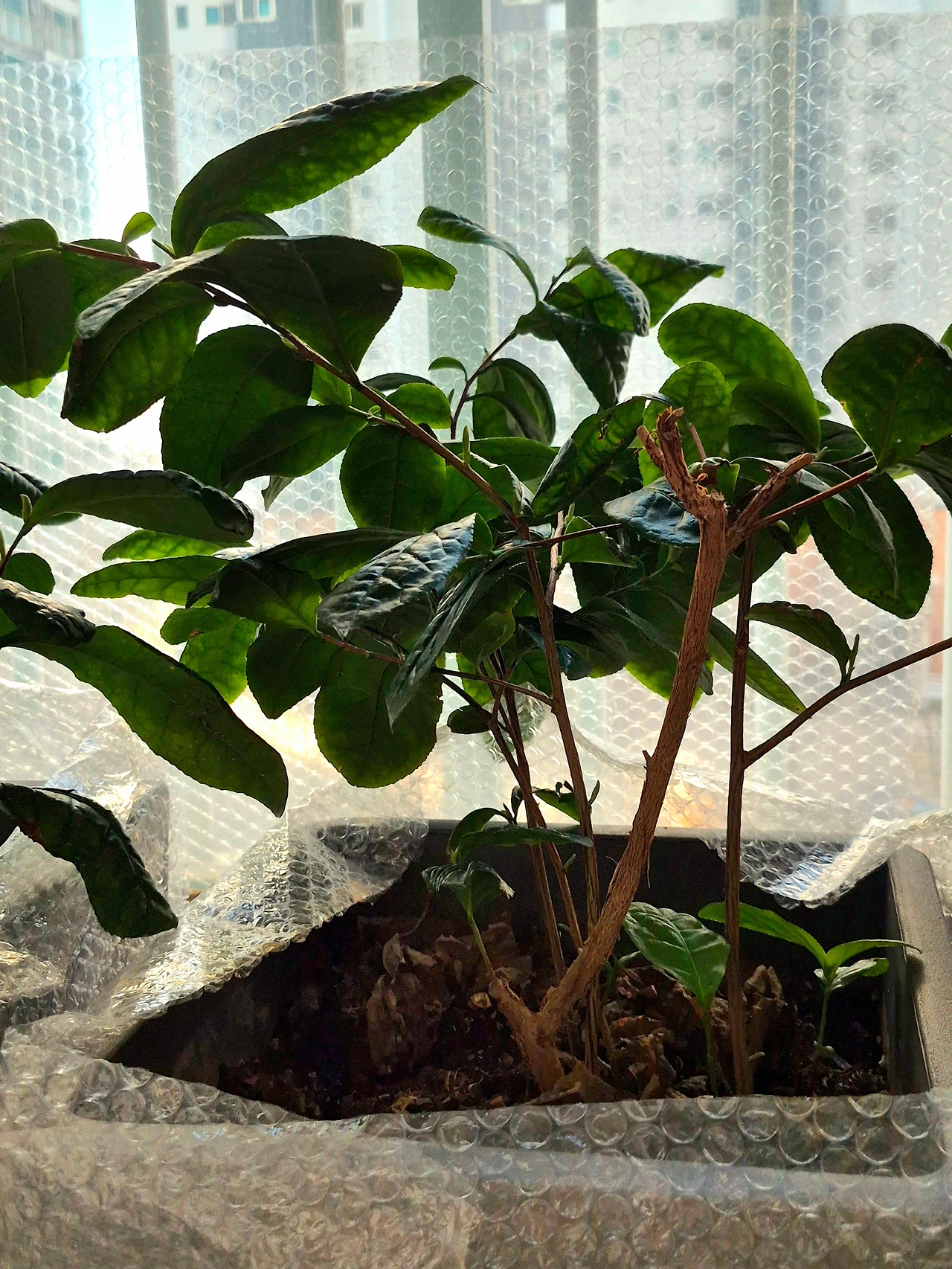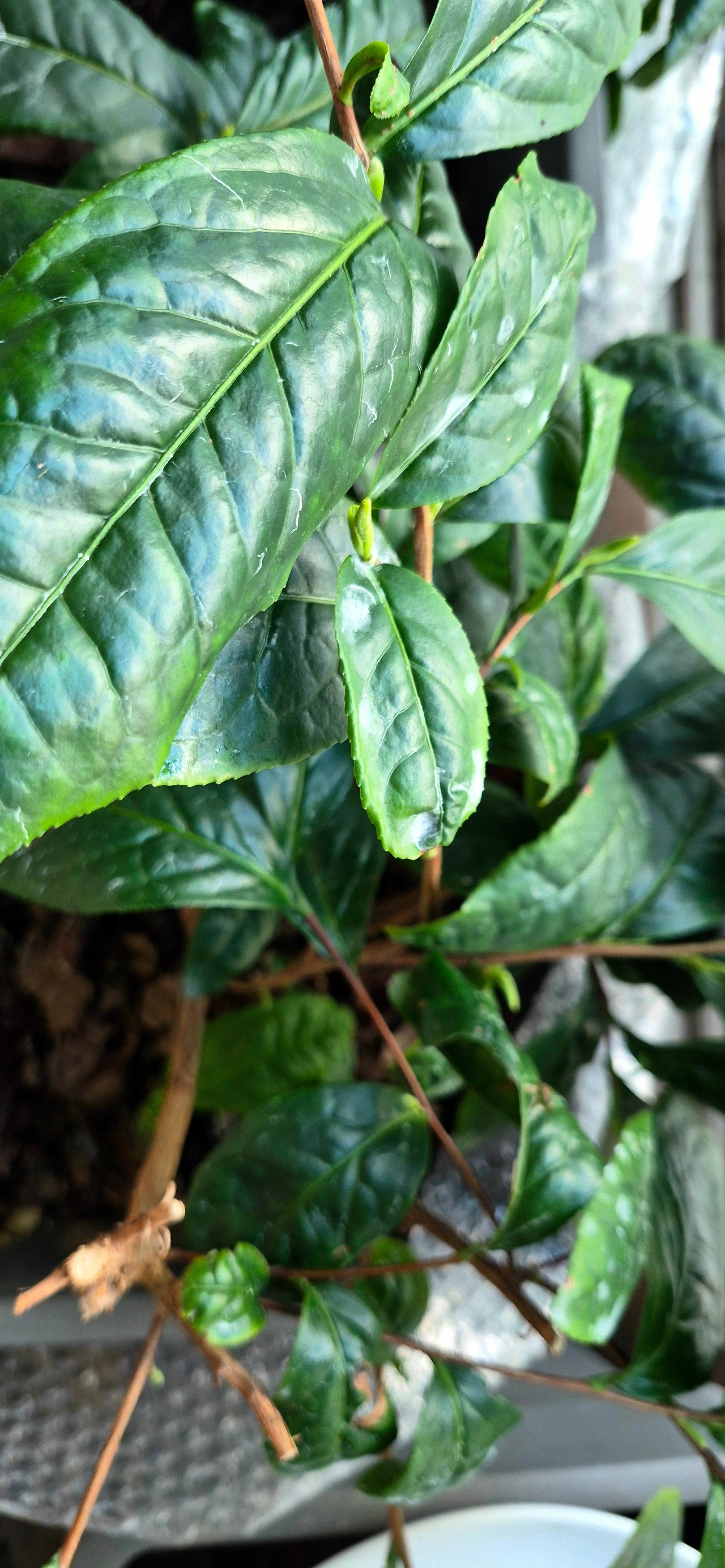 차나무에 언제부터인지 저렇게 딱지처럼 벌레가 생겼다. 티슈로 닦아주기도 하는데, 크게 문제가 되지는 않았다.