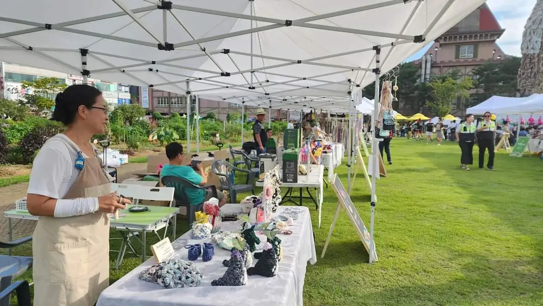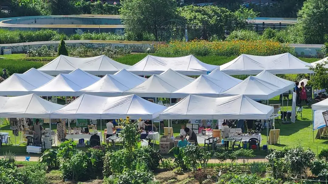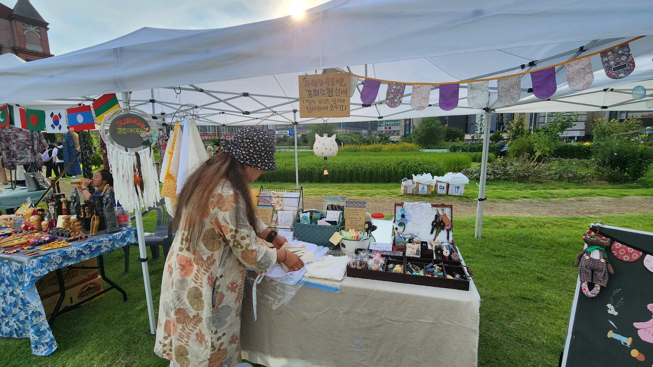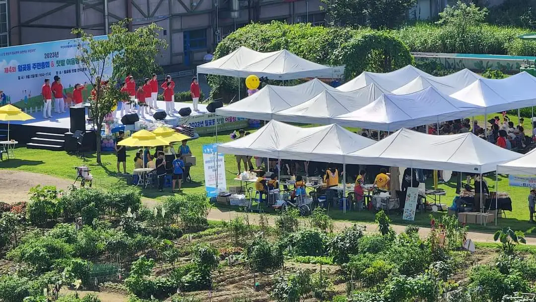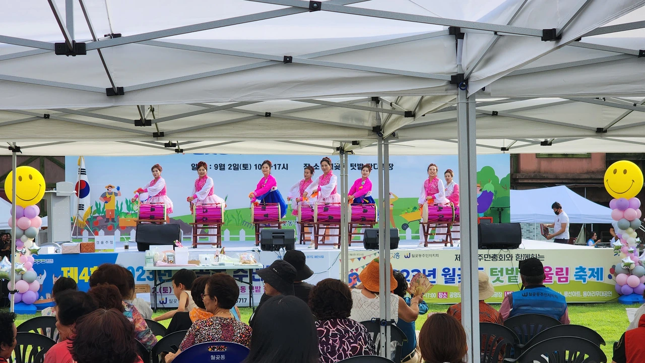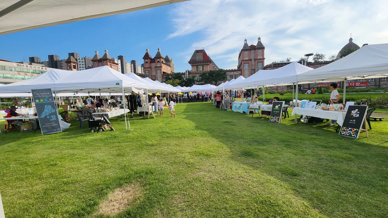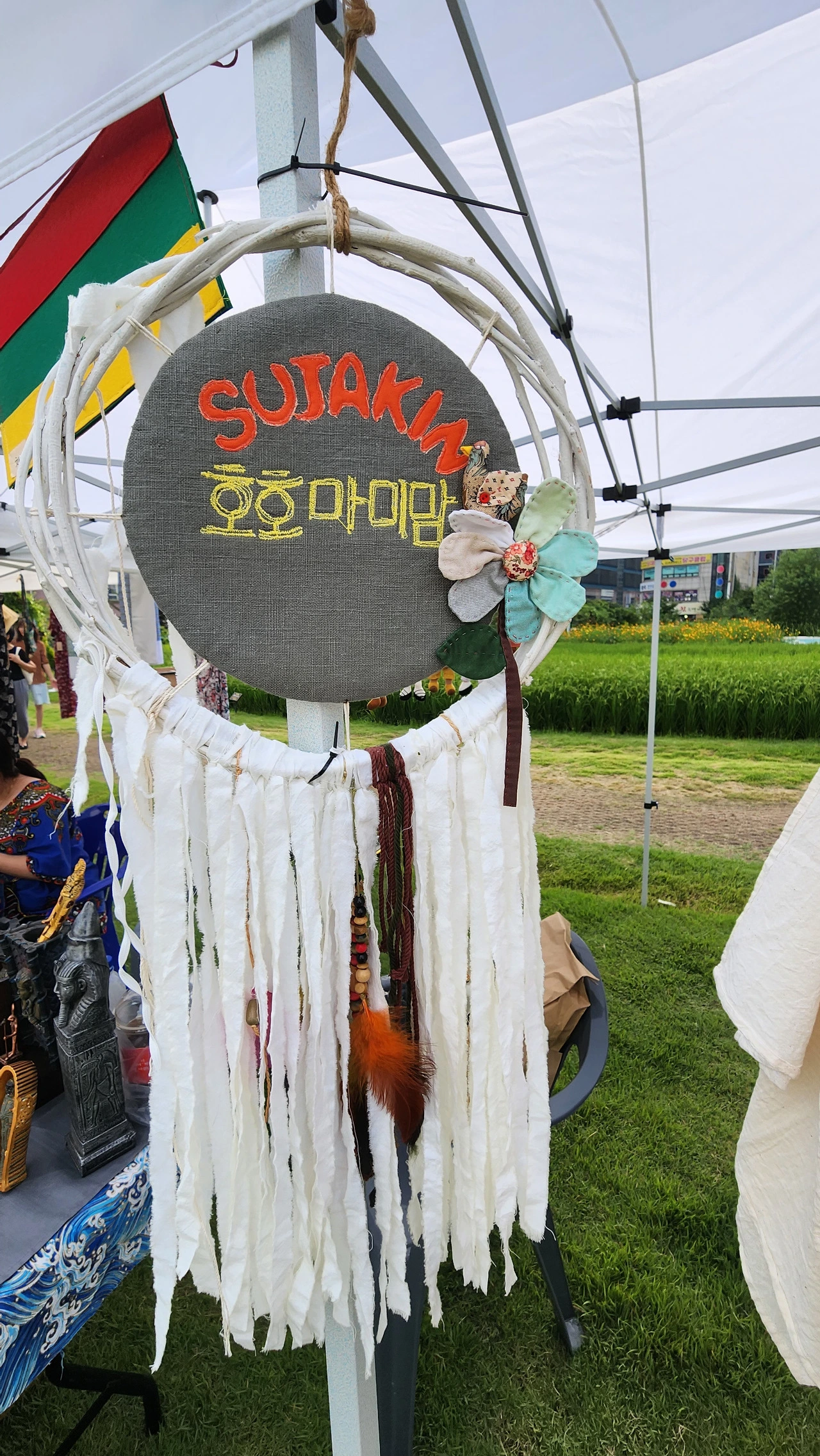 오후 무렵에 다시 행사장으로 갔다. 물론 우리는 텃밭에 가는 길이기도 하였다. 오후 행사는 축제 분위기였다. 노랫가락이 들려온다. 마켓을 구경하며 광목 거즈로 된 앞치마와 행주를 샀다. ㅎㅎ 허리 앞치마에 손행주가 부착되어 있어서 좋았다. 그런데 안 쓰고 그냥 놔두었다. 언젠가는 쓰겠지.