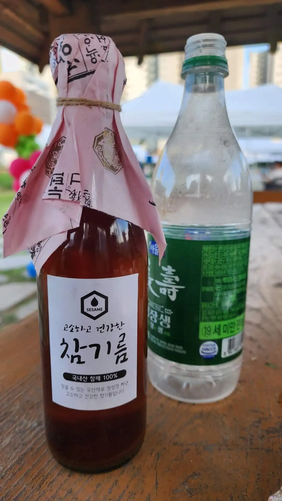 상품으로 나는 참기름을 탔다. 상품 추첨에서 내가 가진 번호는 호명되지 않았다. 이런 기대를 즐기는 시간에서 웃음이 까르르 터진다. 그러다 오늘 마켓에서 물건 산 사람 나오세요~~ 하자, 나는 저요! 하고 후다닥 달려 나가서 참기름을 받아왔다. 이런 경우도 처음이지 싶다. 행사장 느낌을 체험하는 '꼬박 하루'였다. 이런 느낌 저런 느낌이 몸으로 마음으로 전해올 때 '그렇구나' 하는 생각이 들었다. 무대 위 막춤을 보면서 덩실덩실한 느낌들, 노래자랑을 막걸리 마시면서 들을 때는 뜻밖에 숨은 가수들이 많구나! 했으며, 해가 서서히 지는 풍경에서는 기분 좋게 취기가 올라서 이빨 보이며 웃게 되는 순간들. 이 모든 것이 살아 있는 순간이로구나 했다.