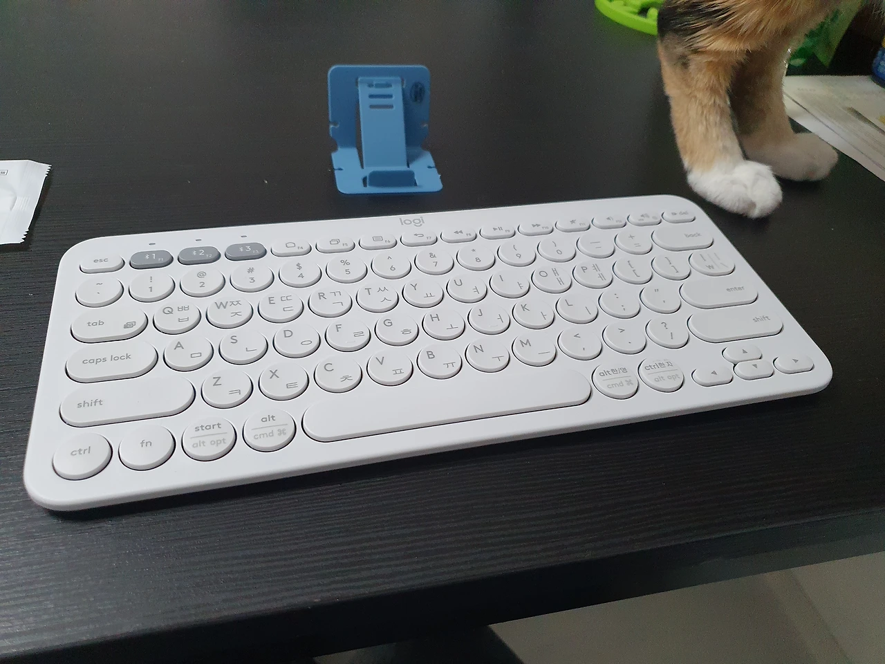 아마 이런 식으로 폰과 연동해 사용하기 좋게 만들어진 미니 사이즈 키보드인 것 같다. 블루투스로 연결하고 몇 글자 쳐보고 있는데 급한대로 쓰기에 좋을 듯 하다. 가볍고 작으니까 말이다.