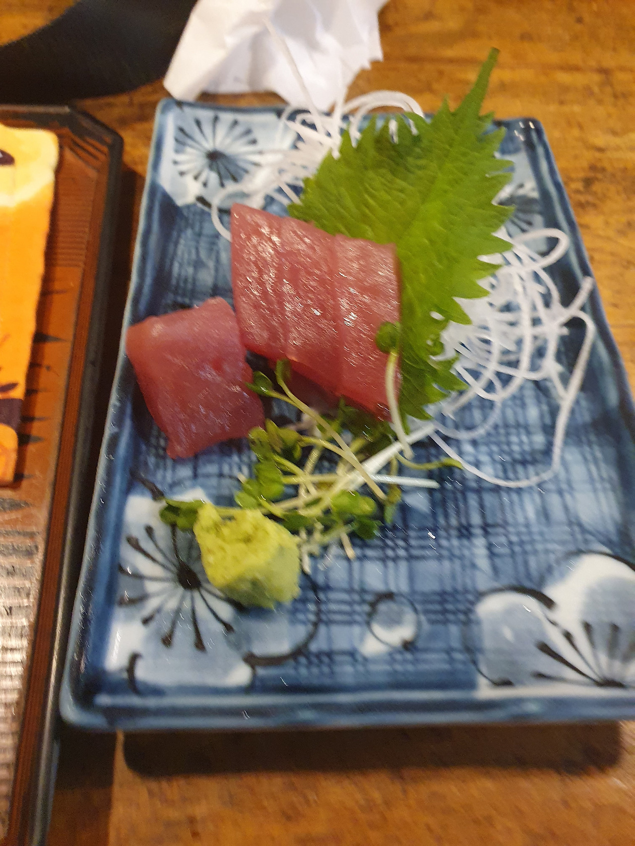 참치 사시미다. 나에게 맥주 3잔은 과음이었기 때문에 당연히 사진은 흔들렸다.