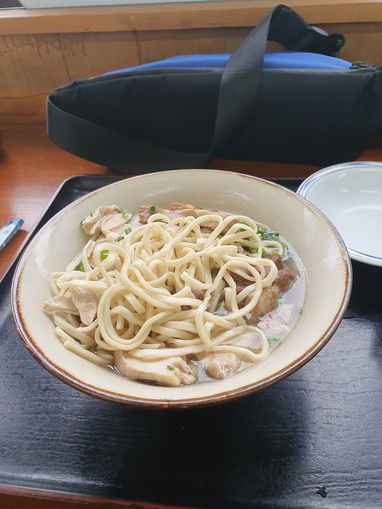 오키나와 소바는 밀가루 제면으로 쫄깃한게 특징. 돼지고기 국물에 우동면 넣은 느낌.