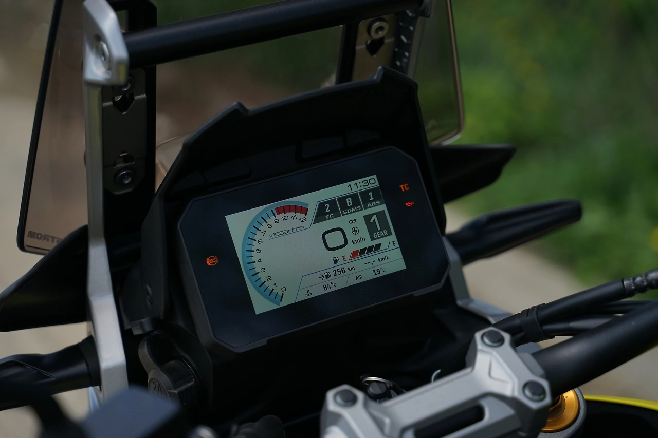 계기반은 버튼 하나만으로 조작이 거의 다 될 만큼 아주 간단한 구조입니다. 최신바이크답지 않은 면도 분명히 있는 건 사실입니다. 하지만 쓸데없이 복잡하고 다양한 기능을 모두 체크해야 하는 것이 귀찮다면 이쪽이 더 좋을 수 있겠습니다. 특히 브이스트롬 시리즈가 바이크 경력이 좀 되고 연령대도 중년 전후 라이더가 많은 걸 감안하면 이쪽이 더 어필하기 쉽겠다는 생각은 듭니다.
