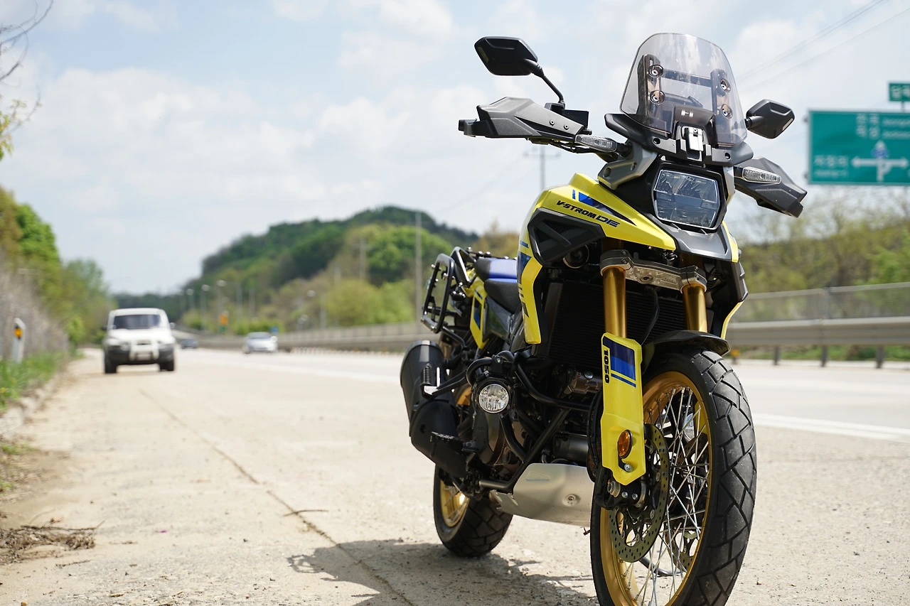 첫인상은 무척 당당하고 터프합니다. 거기에 스즈키 챔피언 옐로 컬러는 노란색과 레몬빛 사이에서 독보적인 존재감을 표시합니다. 시승하는 동안 많은 라이더들이 눈길을 주고, 심심찮게 부끄러운 따봉 손가락을 치켜들어 시승자인 저를 기분 좋게 하기도 했습니다.
