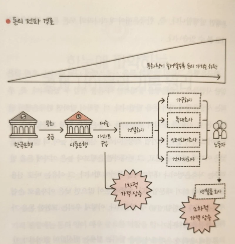 시중 통화량 증가 -> 가격 상승 = 인플레이션