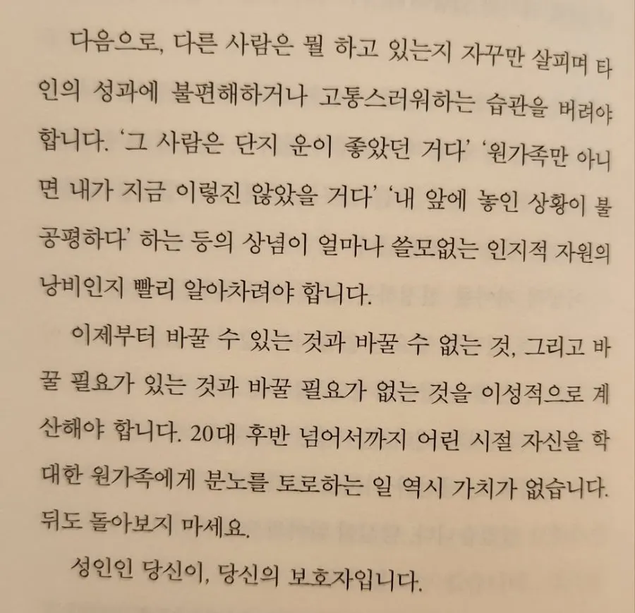 당신의 정서적, 인지적 에너지는 한정적인데 여전히 실망하고 화내는 데 에너지를 쏟고 있으니 말입니다.