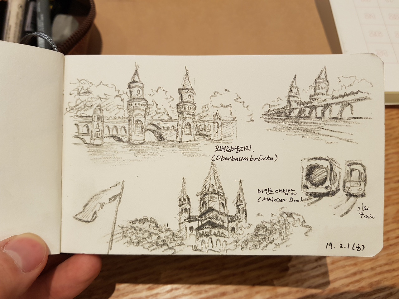 독일에 대한 정보를 좀 찾아보다가 우연히 보게 된 오베르 바움 다리와 마인츠 대성당을 그려보았어요.
