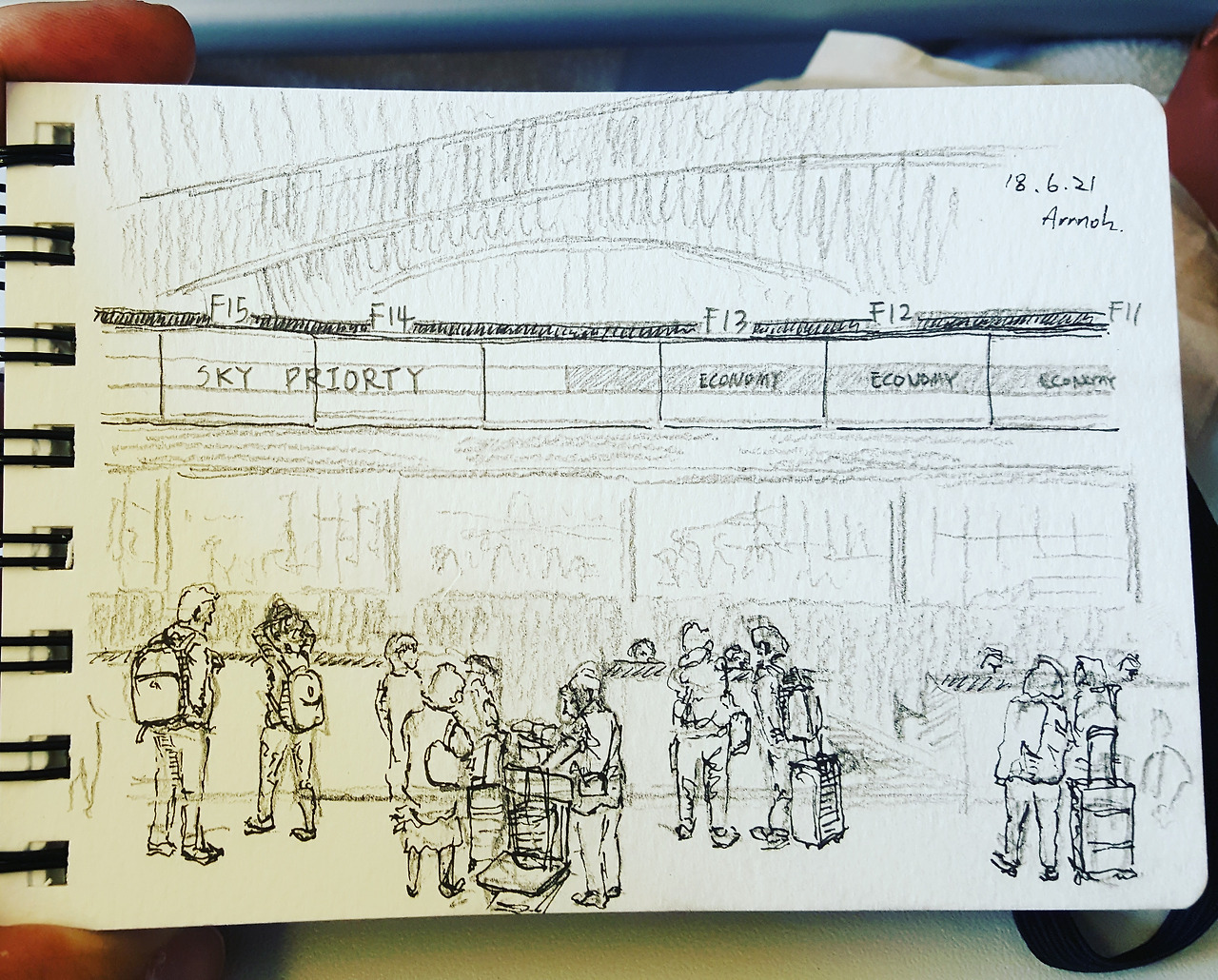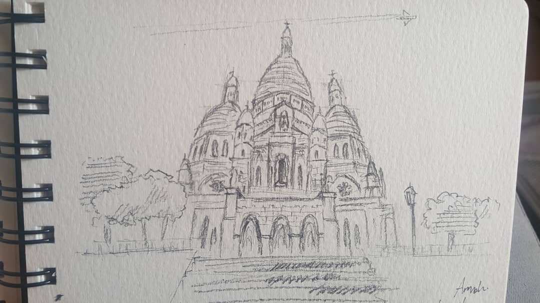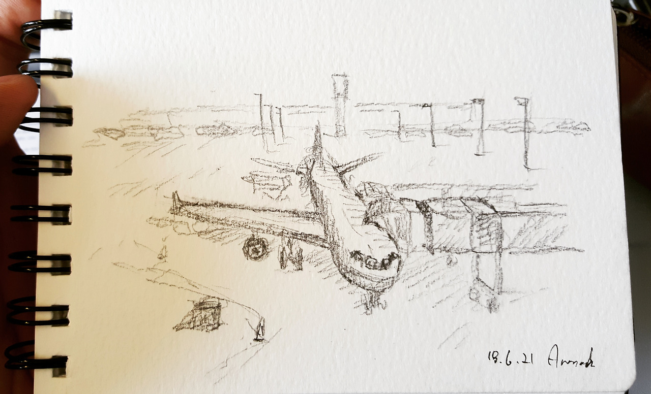[우리를 파리로 데려다 줄 비행기, 시간이 없어 5분 만에 그렸다.]