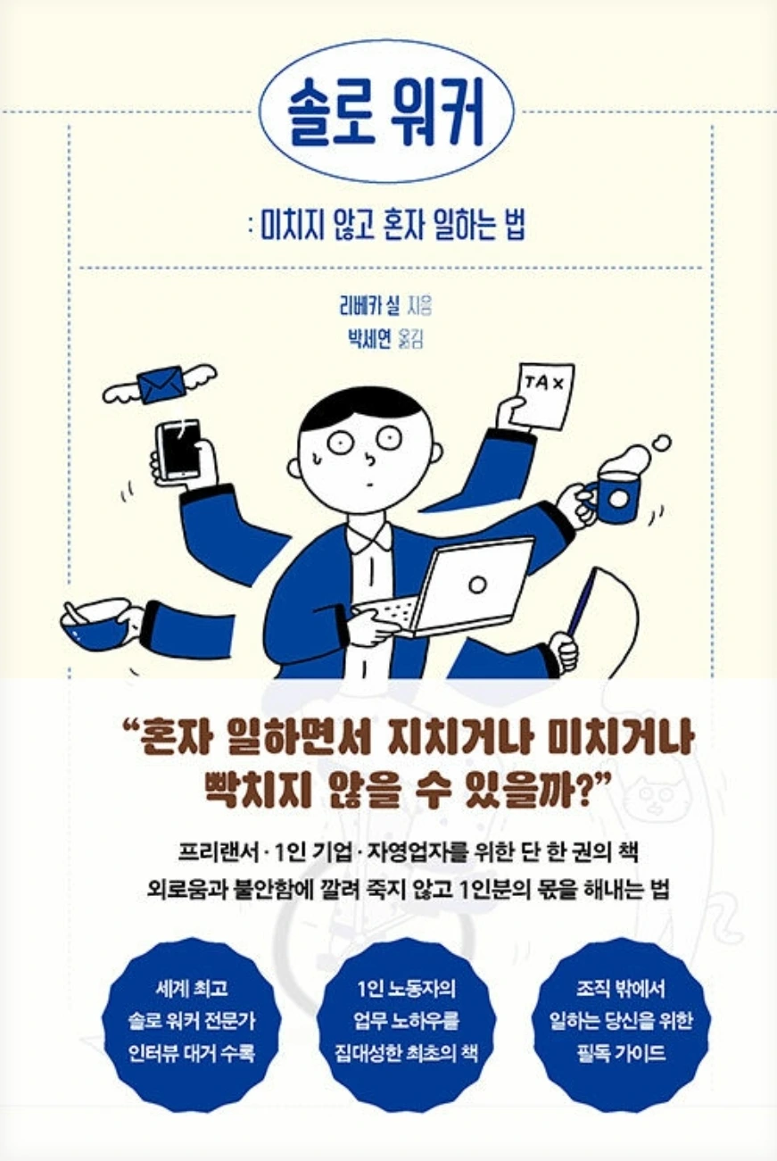 비즈니스 세상은 너무도 빨리 변화하기에 미래를 예측하기 어렵다. 그럼에도 솔로 워커로서 자신과 자신의 특성, 리듬, 그리고 욕망을 이해해야 한다. 이를 통해 우리는 외부 변화와 충격으로부터 스스로를 지켜낼 수 있으며, 특별하고 고유한 자신만의 상황에 적합한 비즈니스 모델을 구축할 수 있다. 무엇보다 스스로에게 친절하자. 당신은 혼자가 아니다.