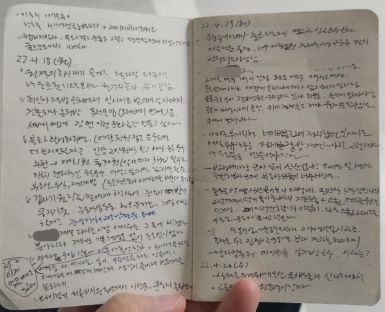 22년 4월 17일에서 23년 4월 10일까지 그래도 1년 동안 쓴 메모장이더라고.