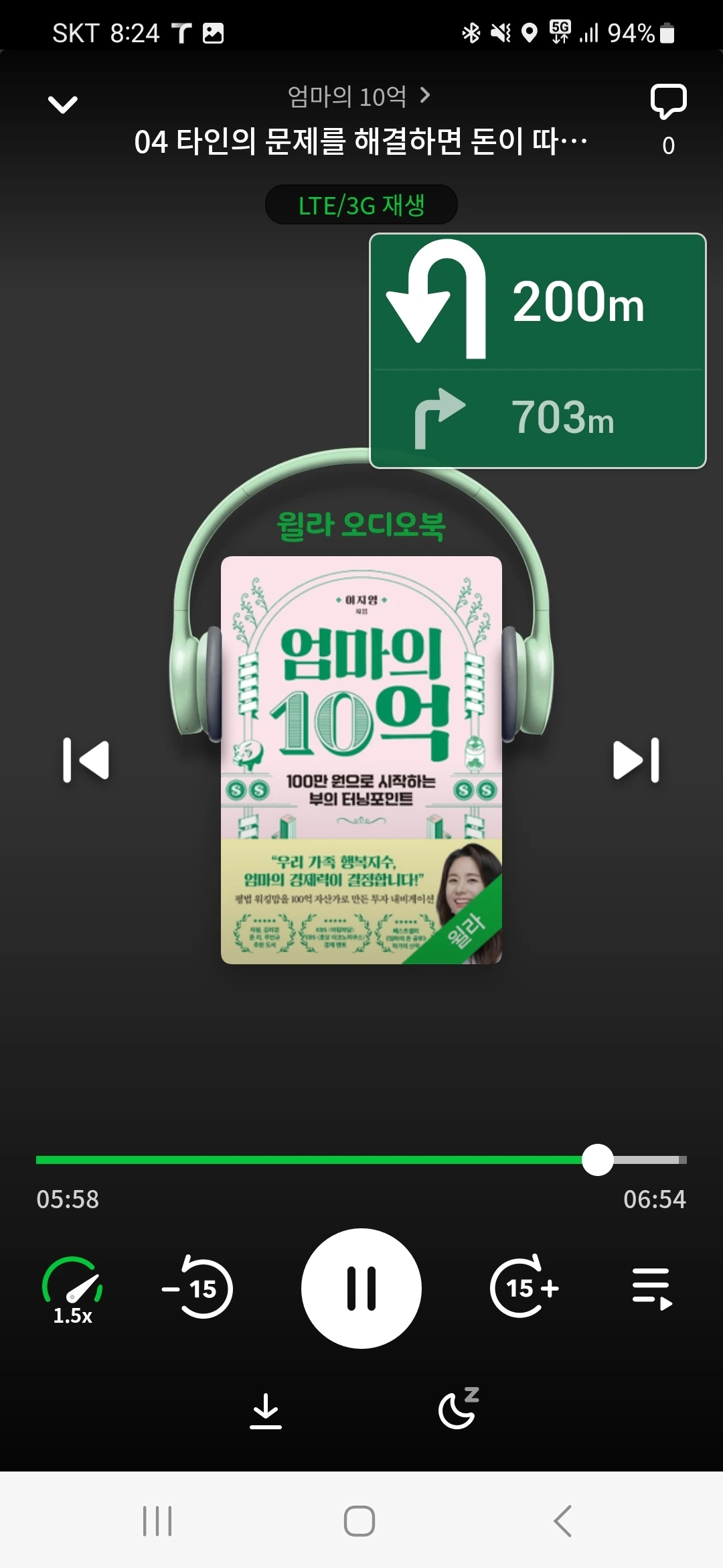오늘은 출근하면서 <엄마의 10억>이라는 책을 들었어.