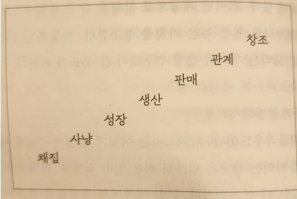 저자 세스 고딘이 가치의 서열을 써놓은 거야. 채집이 가장 낮고, 창조가 제일 높고.