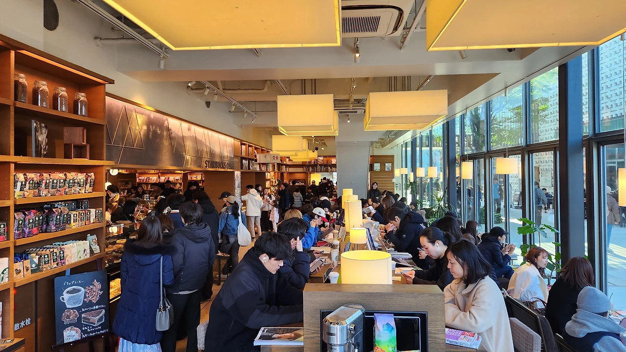 츠타야 서점이 중고생 책을 팔던 곳이었는데, 스타벅스와 다양한 기업과 콜라보를 하면서 이렇게 공간 확장이 된 거래.