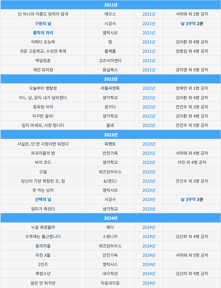 반전을 넣은 스릴러 장르에서 꽤나 독보적인 입지를 구축하고 엄청난 다작 중인 정해연 작가님의 작품. (연간 4-5편의 장편을 발간 중이니 team 정해연이 아닌가 의심스러울 정도다.)