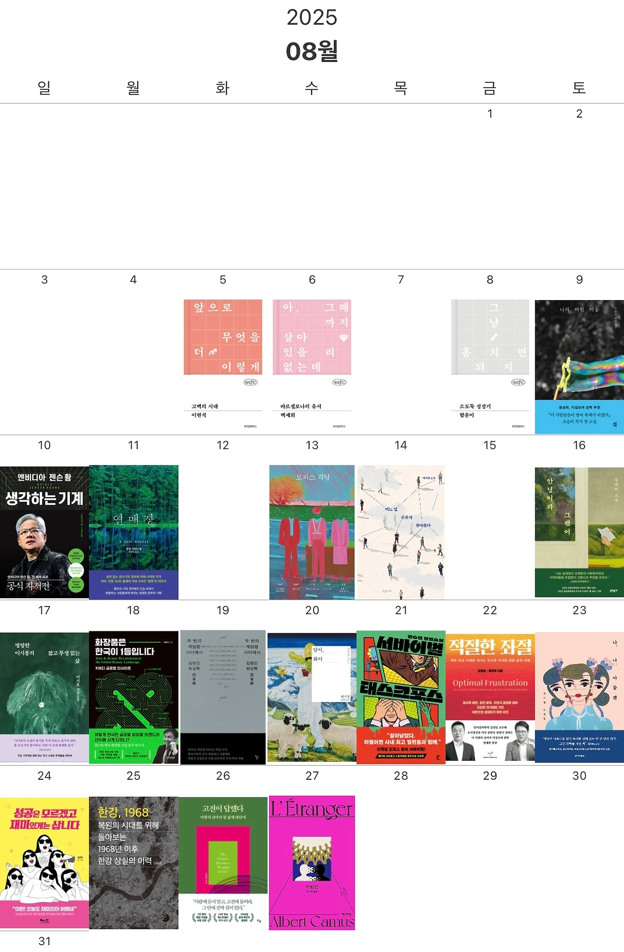 8월 결산을 이제야 하다니... 9월은 회사 일이 그 양도 대단히 많고 정신적으로도 몹시 피곤한 나날들이었다. 9월에 읽은 책들은 아직 독서노트도 하나도 못 썼고, 책 자체도 거의 읽지 못했다. 그냥 어디 절간 같은 곳에 들어가서 산책하고 책 읽고 일찍 잠드는 생활을 하면 얼마나 좋을까. 그러기엔 내 역할이 너무 많다...