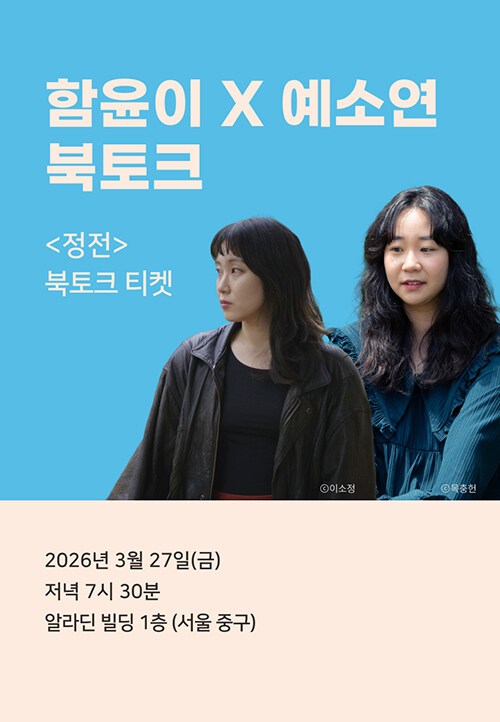 알라딘을 뒤적거리며 '어디 재미있는 책 없나...' 찾아보다가 함윤이 작가님의 장편소설 <정전> 출간 소식을 봤다. 무려 올해 문학동네 소설상 대상 수상작이다. 재미와 작품성 두 마리 토끼를 다 잡는 작가라니. 어, 그런데 출간 기념 북토크가 책과 세트로 구성되어 있었다. 금요일 저녁 7시 반 광화문 알라딘 빌딩. 사회는 무려 예소연 작가님이다. 핫한 작가가 말아주는 핫한 작가의 북토크라니 이건 가야 해! 바로 세트를 구매하고 다음 날 도착한 책을 설레는 마음으로 읽기 시작했다.