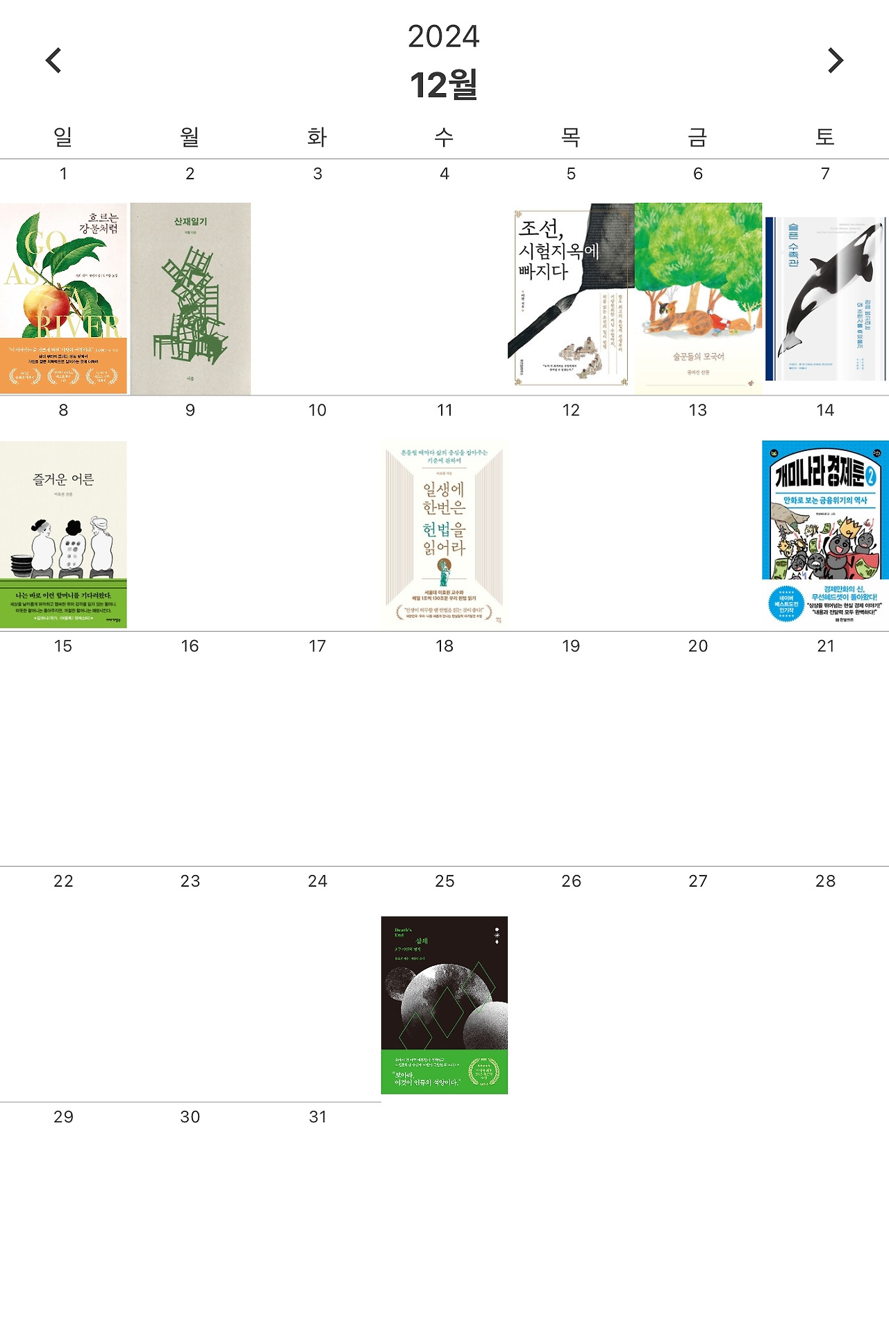 12월엔 길게 휴가를 다녀오느라 11월만큼 많이 읽지는 않았습니다. 간단히 정리해 봤습니다.