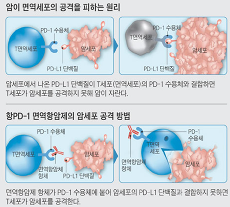 1세대 항암제인 세포독성항암제는 그 독성으로 부작용이 많이 발생한다. 2세대 항암제인 표적항암제는 항암제가 암세포를 공격하지 못하게 막는 단백질 변이 등을 무력화하여 암세포를 효율적으로 공격시키는 항암제이다. 3세대 항암제인 면역항암제는 인간의 면역세포가(공격수인 T세포) 암세포를 공격하지 못하게 막는 단백질을 막아 T세포가 암세포를 더 잘 공격하도록 하는 역할을 한다. 이 면역항암제 원리를 발견한 과학자들은 노벨상도 받았다.