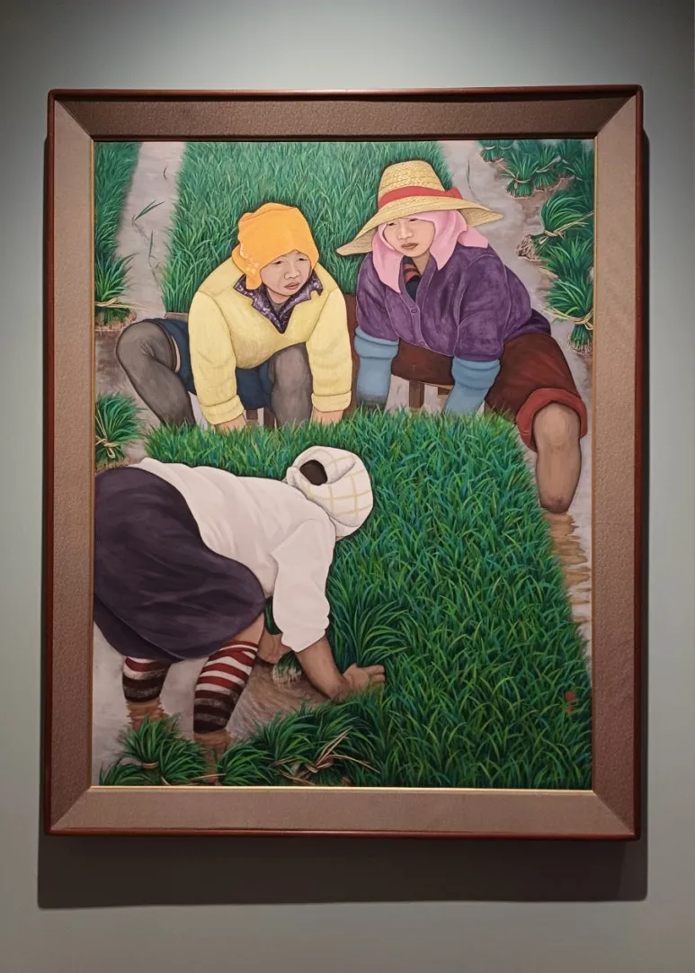 작가는 김제 금산사를 오가며 스케치하다 논에서 모찌기 하는 모습을 보고 그렸다고 합니다. 모찌기는 모판에 자란 모를 묶는 일을 말하는데요. 모내기만 알았는데 작품을 통해 '모찌기'라는 단어를 새롭게 알았어요.ᐟ