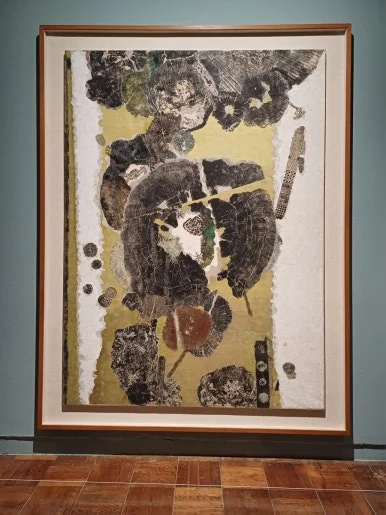 나이테, 엽전, 떡살, 다식판을 탁본하고 색을 칠해서 콜라주 하는 방식으로 완성한 작품이에요. 나무의 나이테와 배치한 감각, 색감 모든 면이 좋았어요. 서울시립미술관에서 11월까지 진행한 전시《격변의 시대, 여성 삶 예술》에서도 인상 깊게 본 작가이기도 하고요.