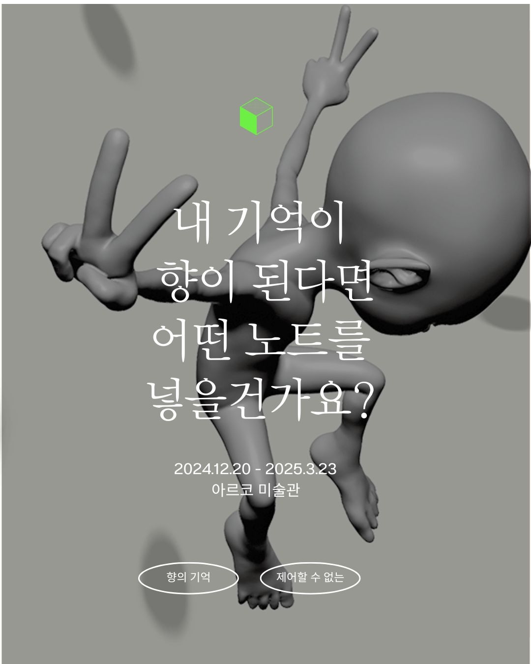 아르코 미술관은 휑이추푸 전시 이후로 오랜만에 방문했는데요. 보고 싶은 전시가 많았지만 (특히 ai를 활용한 미디어아트 단체전을 놓쳐서 아쉽다.) 왜인지 오랜만의 방문했어요. 이전 전시에선 전시공간이 꽤나 커 보였는데, 가벽을 치우고 벽을 그대로 드러내어 향으로 만 채우니, 크기가 그대로 보여 꽤나 작아 보이더라고요. 시각적 요소를 제한하니 후각에 집중할 수 있었던 거 같기도 합니다.