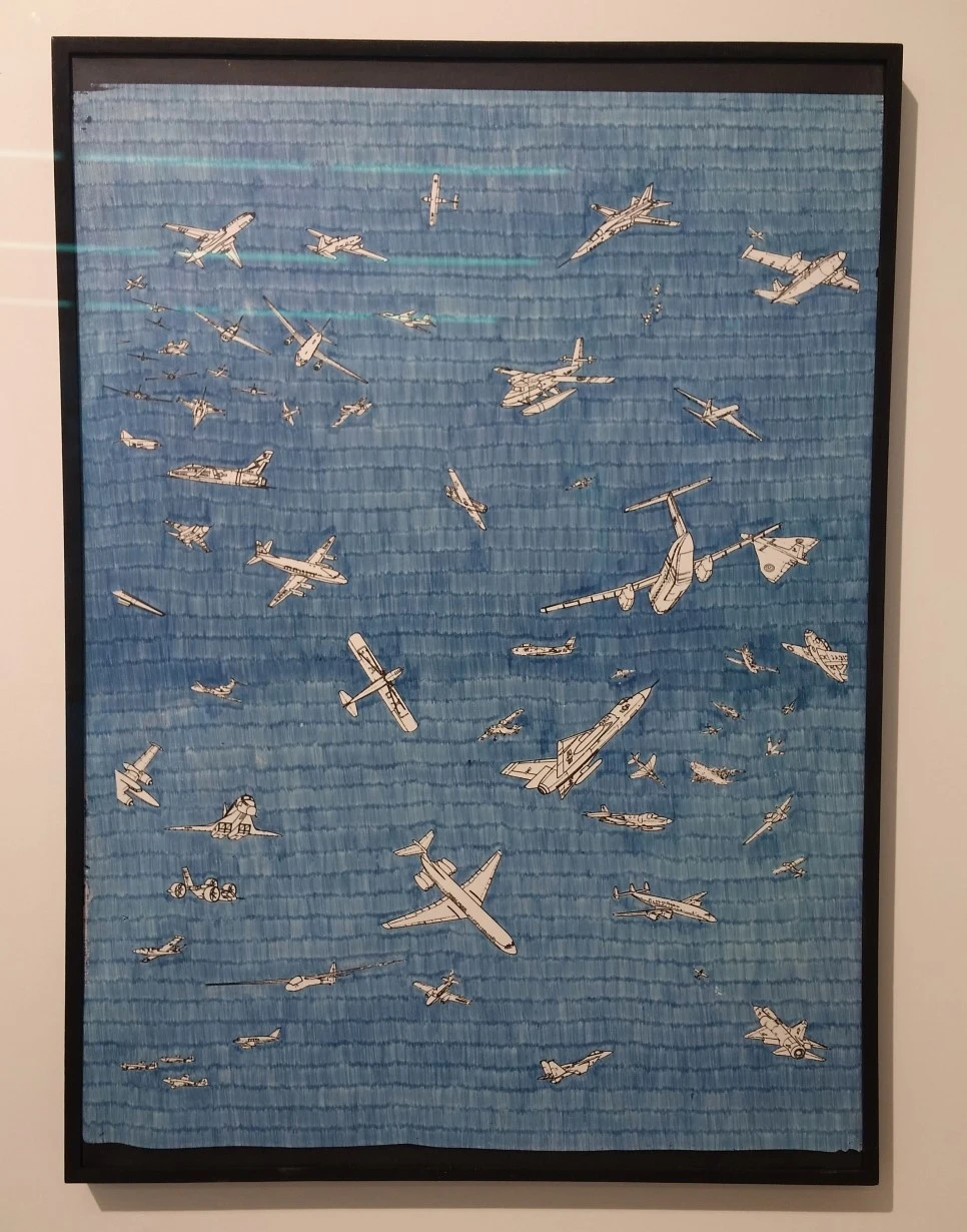 신기한 게 볼펜으로 페이퍼에다가 드로잉을 한 다음에 그걸 캔버스에 올린 작품.