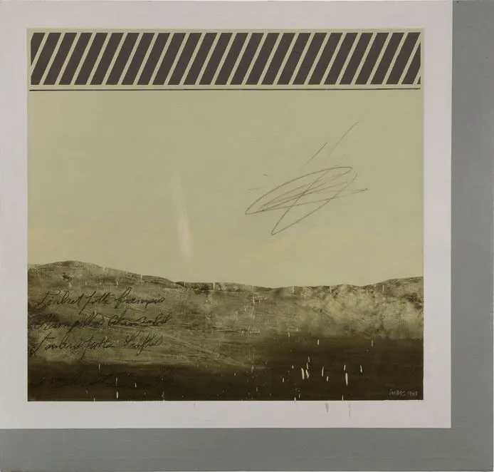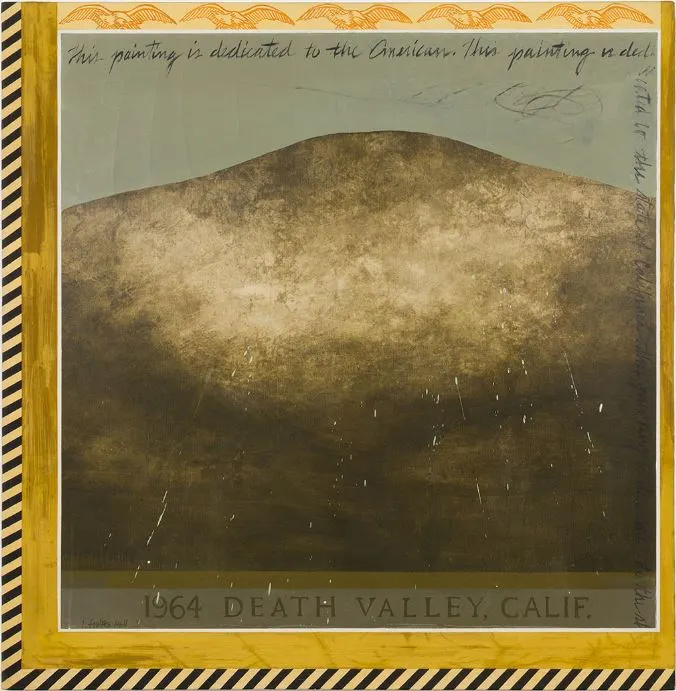 그의 작품 The Death Valley, Calif 은 산을 묘사하고 있지만, 물에 젖은 듯한 자국이 눈에 띈다. 또 그것을 바로 작품에 그대로 보여주면서 미묘한 질감과 그림자를 나타내고 있다. 또한, 작품의 왼쪽부터 아래까지 이어져있는 노랑-검정 줄무늬 자국이 눈에 띄는데 마치 교통표지판을 떠올리게 한다. 그리고 그림 한편에는 작가 Ulysses S. Grant의 책에서 차용한 'This painting is dedicated to the American.' 문구가 적혀 있다.
