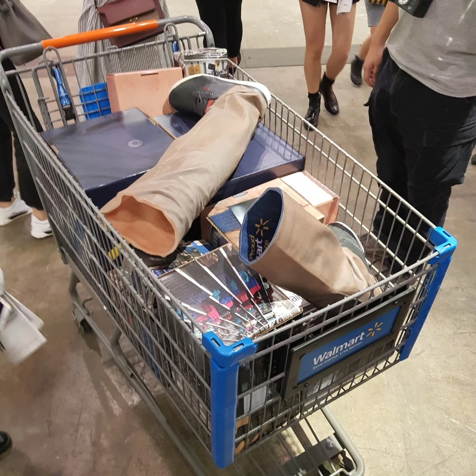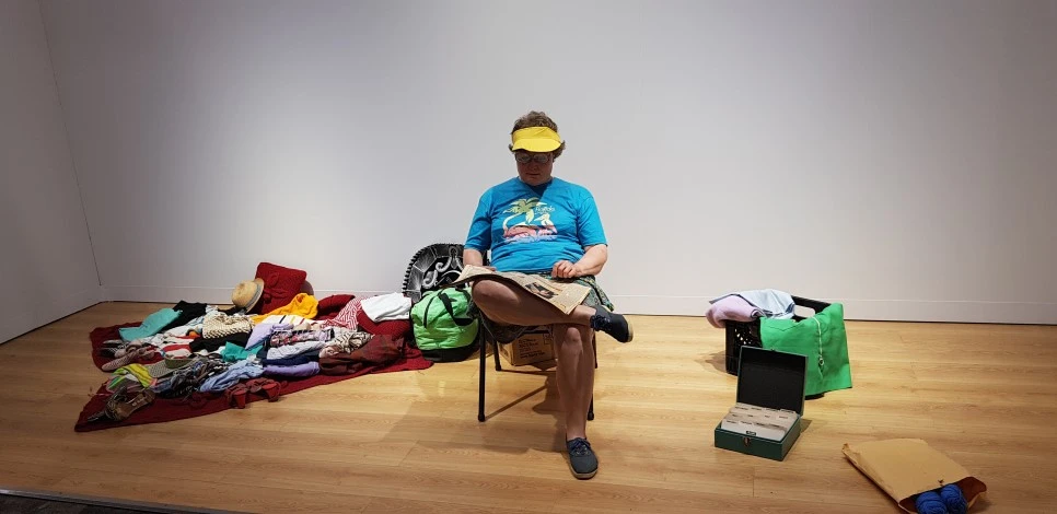 paul chan - model (bender or inhaler with shoes) , model (duo with towel and bag)