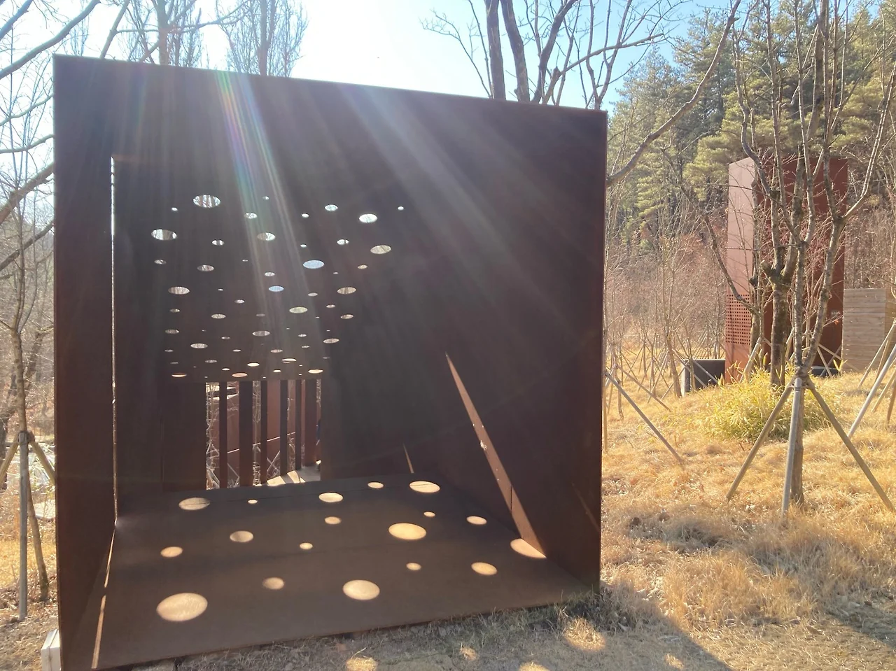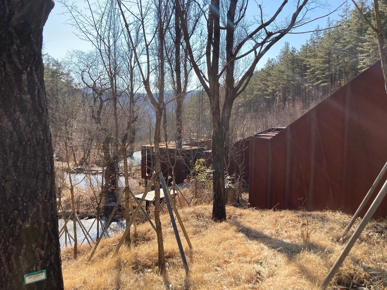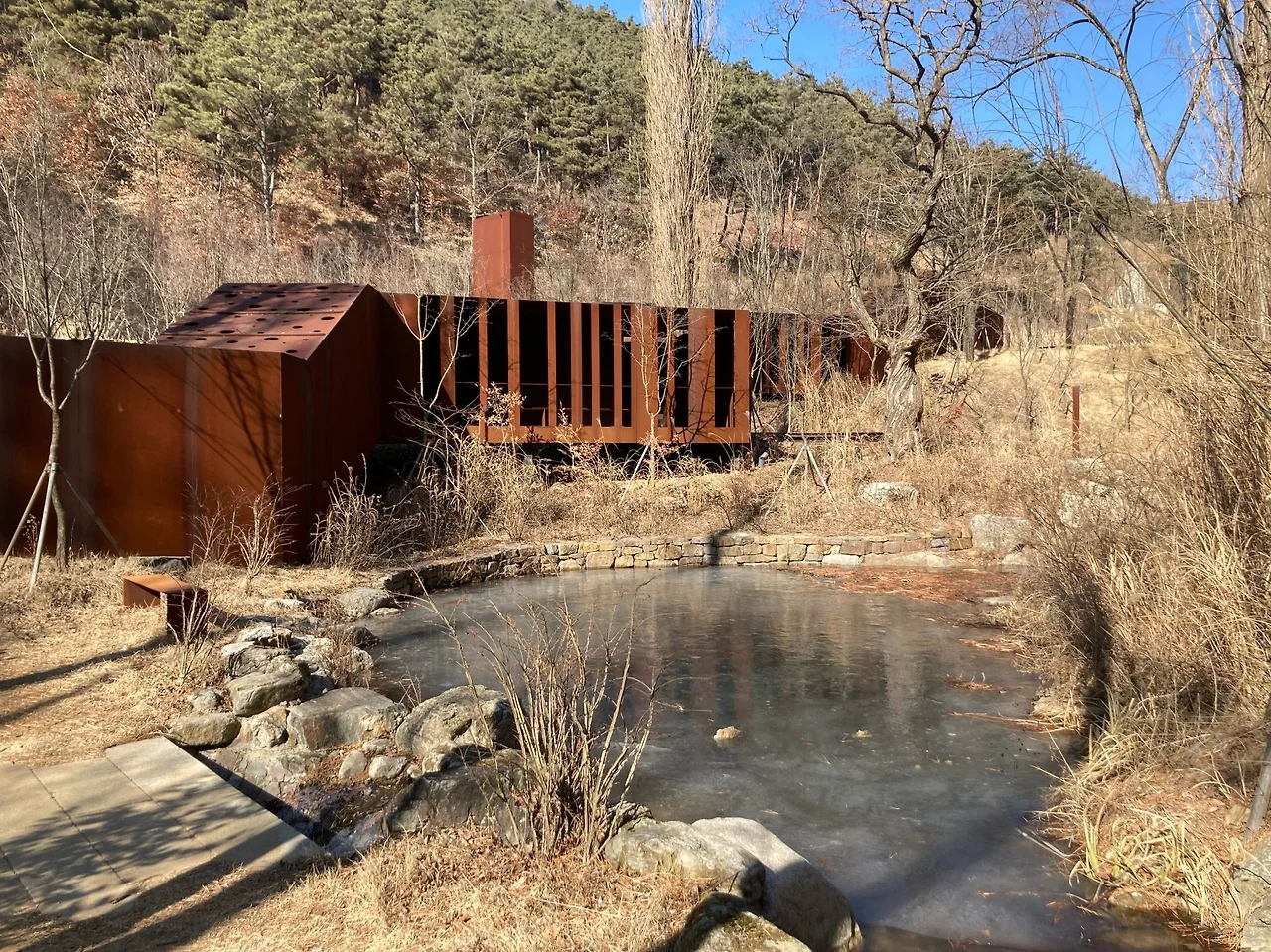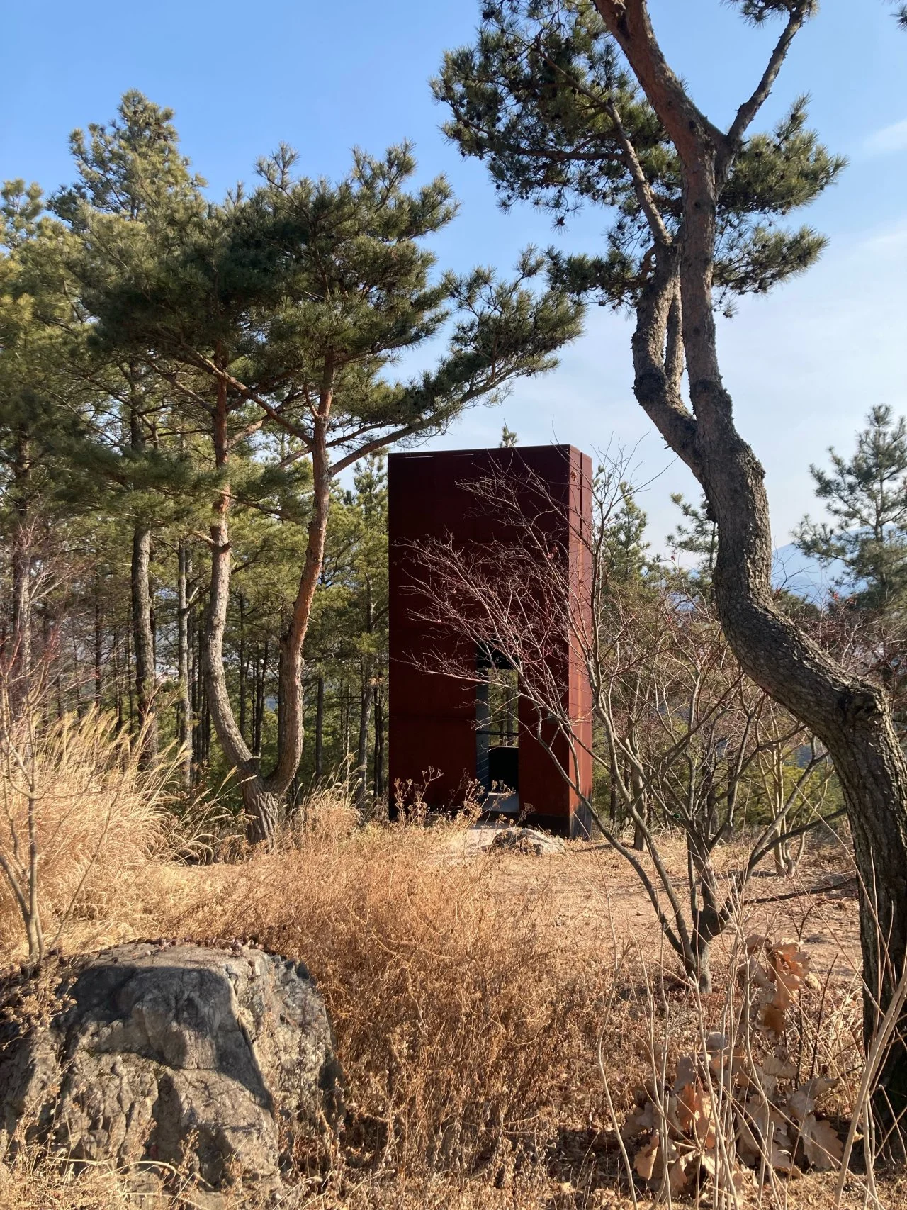 이외에도 사유원에는 하나하나 설립자의 손길과 고민이 깃들어있는 건물들이 있지만 마지막으로 사유원 방문 시 꼭 내부에 들어가 봐야만 하는 건물로 화장실을 추천드립니다. 사유원의 코스 곳곳에는 별다른 장식 없이 소박한 몇 개의 화장실 건물이 세워져 있습니다. 영어에서는 화장실에 간다는 표현을 "Nature calls"라고 우회적으로 표현을 하는데, 사유원의 화장실들은 그야말로 자연이 부른다는 표현을 뜻 그대로 느낄 수 있는 곳들입니다. 사유원의 화장실을 가보게 된다면, 항상 집의 가장 구석진 곳에 보이지 않듯 숨겨져 있는 화장실에 대한 생각이 조금 달라질지도 모르겠네요.