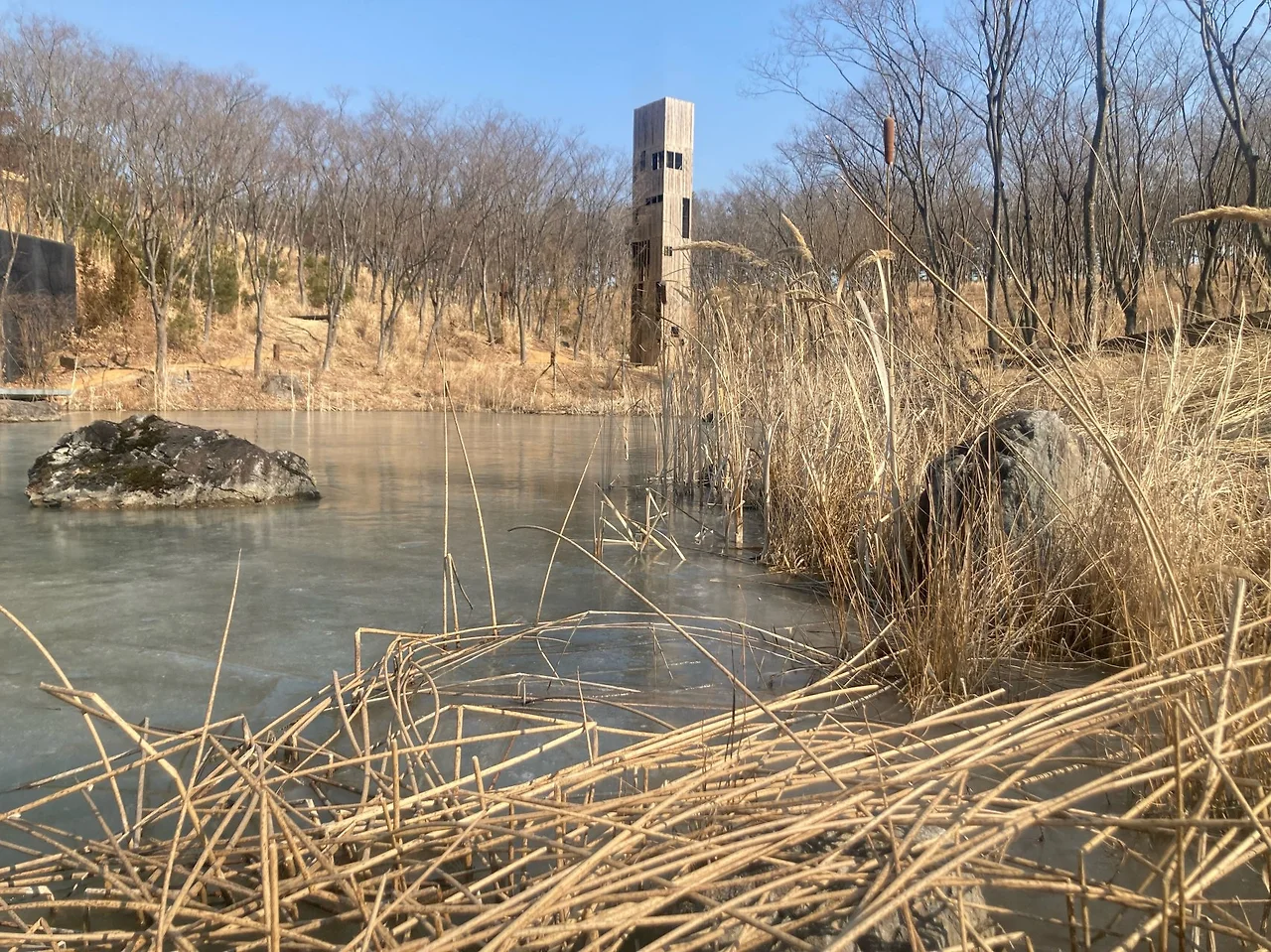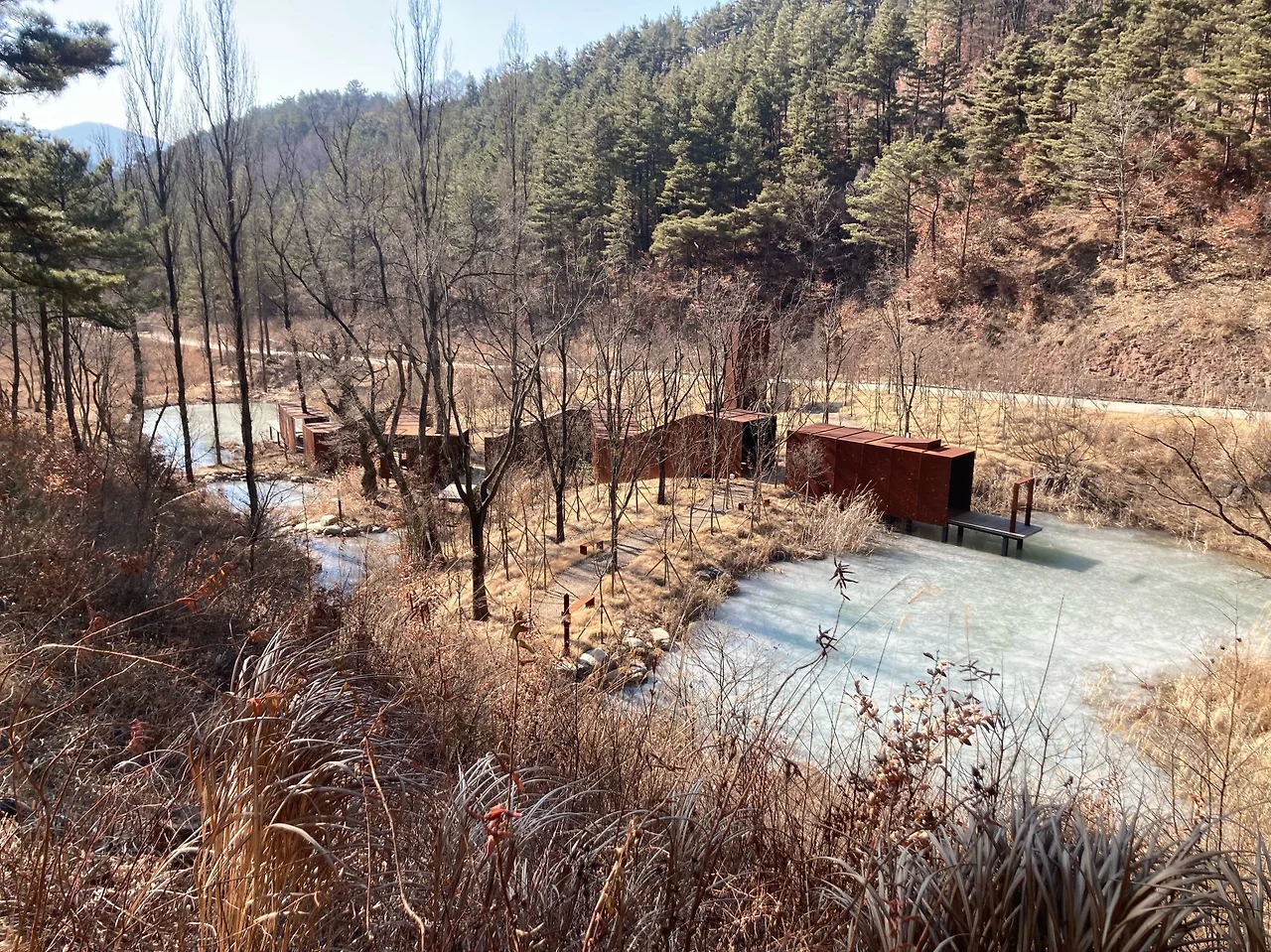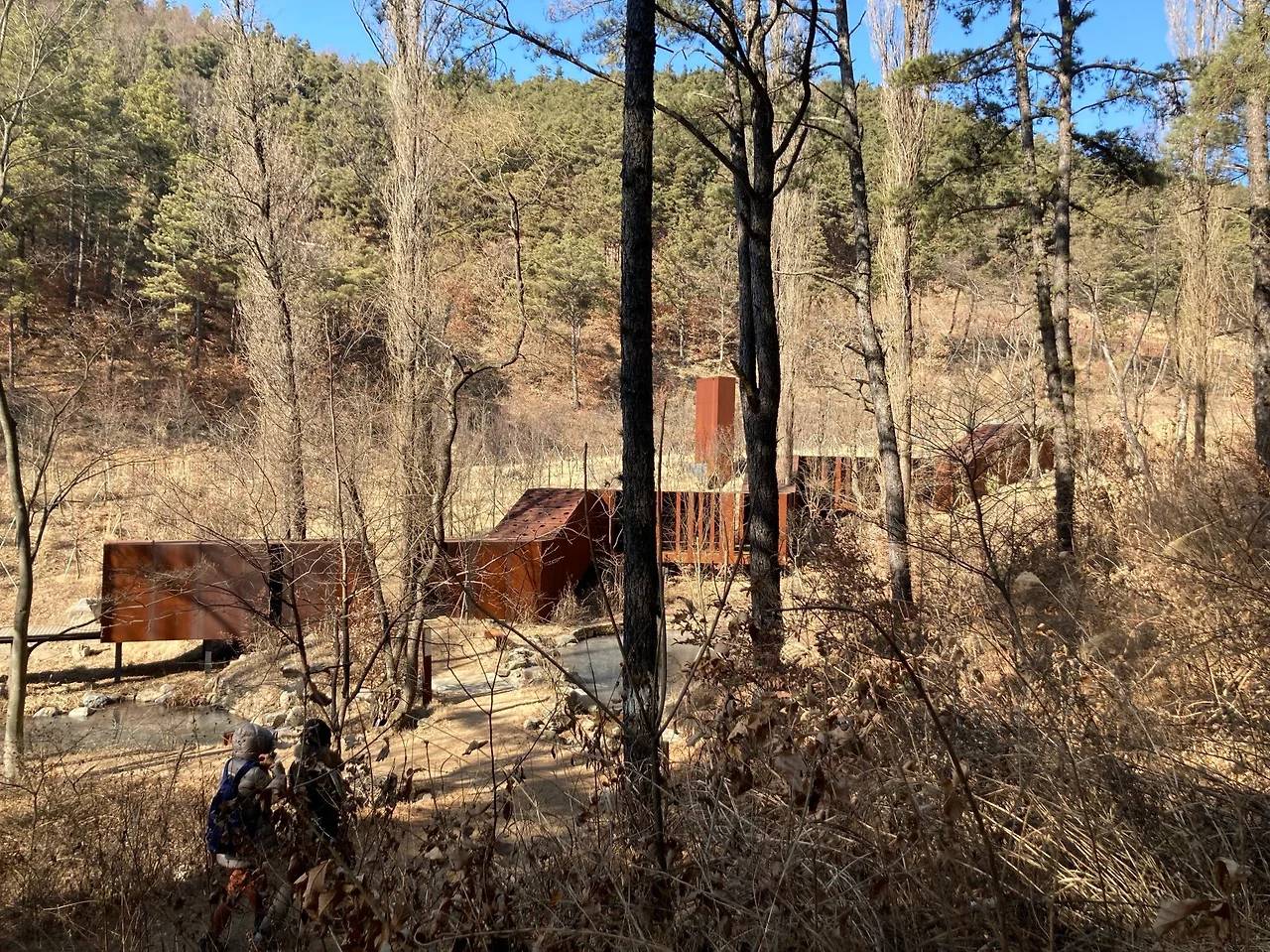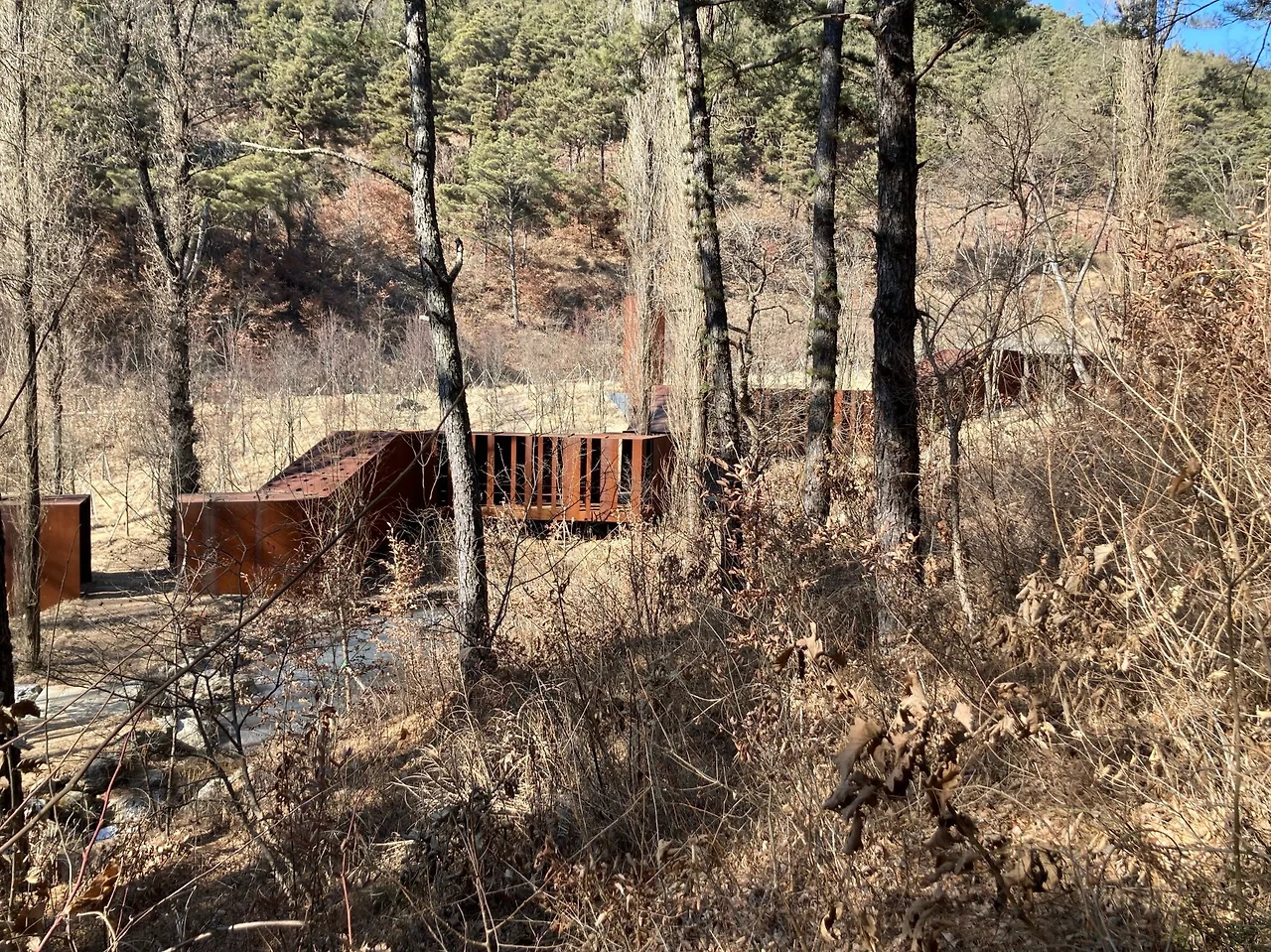 이외에도 사유원에는 하나하나 설립자의 손길과 고민이 깃들어있는 건물들이 있지만 마지막으로 사유원 방문 시 꼭 내부에 들어가 봐야만 하는 건물로 화장실을 추천드립니다. 사유원의 코스 곳곳에는 별다른 장식 없이 소박한 몇 개의 화장실 건물이 세워져 있습니다. 영어에서는 화장실에 간다는 표현을 "Nature calls"라고 우회적으로 표현을 하는데, 사유원의 화장실들은 그야말로 자연이 부른다는 표현을 뜻 그대로 느낄 수 있는 곳들입니다. 사유원의 화장실을 가보게 된다면, 항상 집의 가장 구석진 곳에 보이지 않듯 숨겨져 있는 화장실에 대한 생각이 조금 달라질지도 모르겠네요.