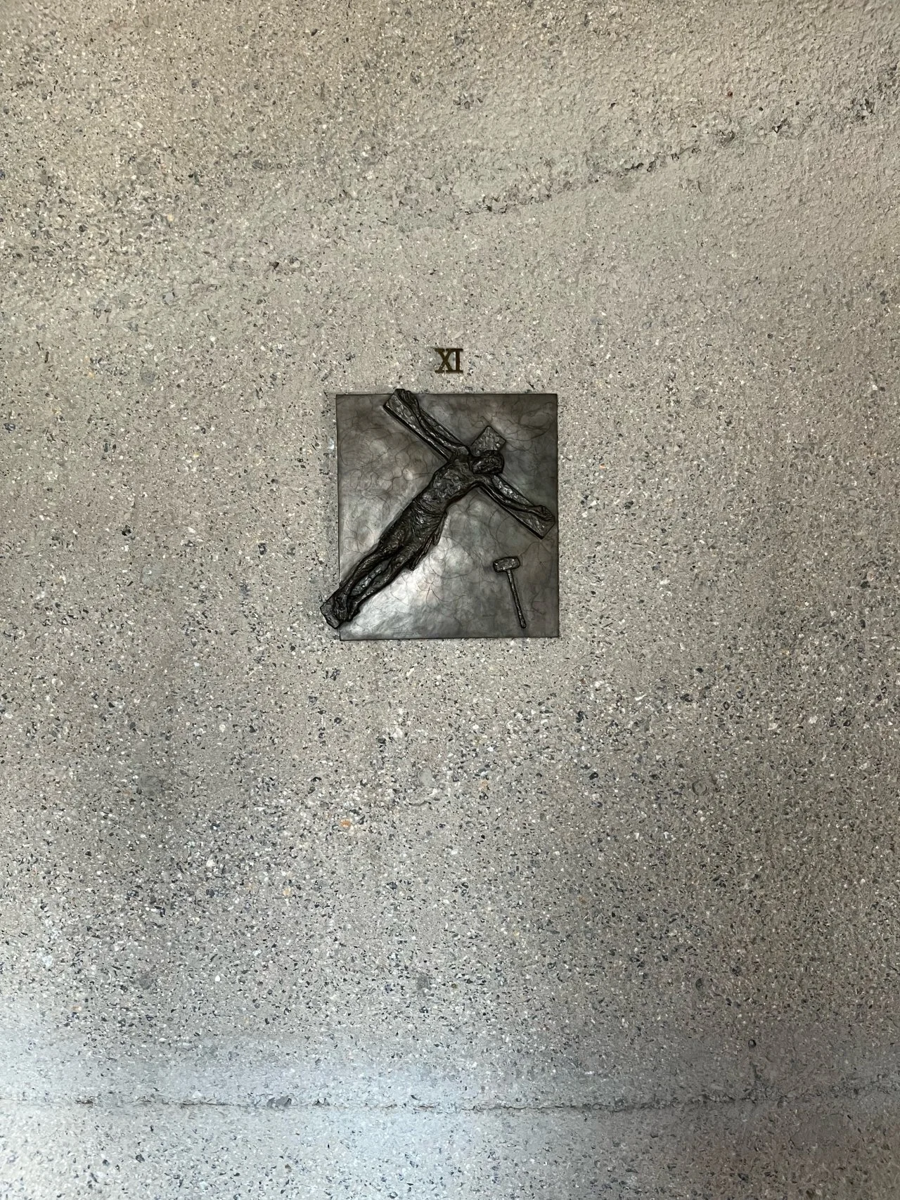 이후 이어지는 예배실의 십자가는 독특하게도 십자가에 매달린 것이 아니라 부활하신 예수님을 형상화(고 장동호 프란치스코 작품)하고 있습니다.